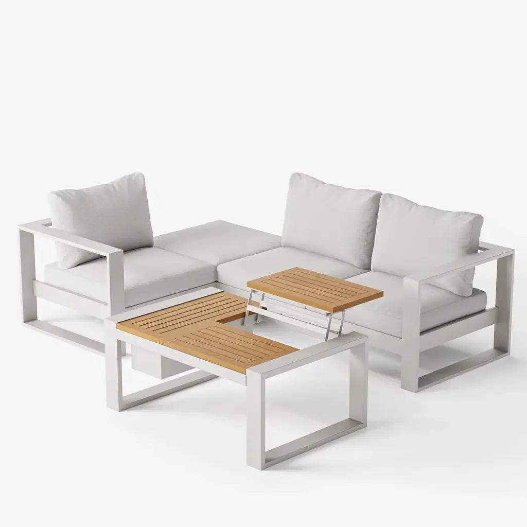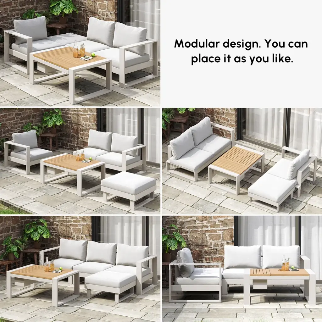 4-Pieces Modular Outdoor Sofa Set Aluminum & Acacia For 4 Person In Light Gray