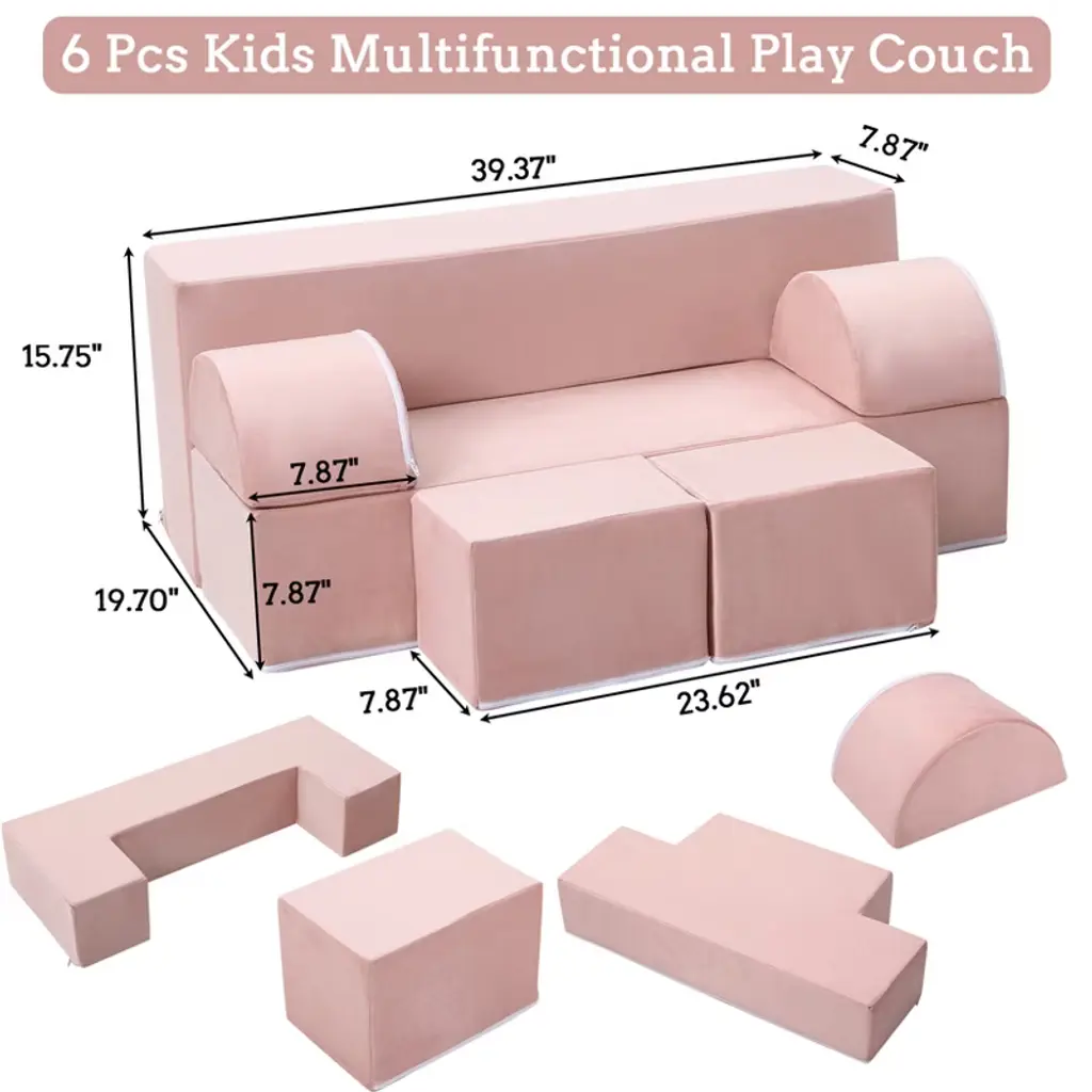 6Pcs Modular Kids Play Sofa, Toddler Couch Play Couch For Playroom, Foam Modular Couch For Girls & Boys