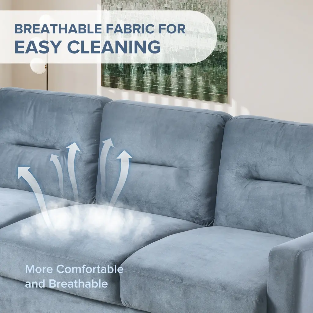 77" Large 3-Seater Loveseat Sofa Couch, Modern Living Room Velvet Fabric Sofa Modular Sofa Couch For 3 - Gray