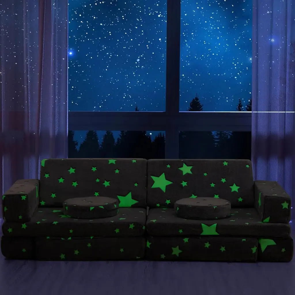 Acekool 12-piece Modular Kids Couch, Convertible Sofa With Glow-in-the-dark Stars, Creative Play & Sleep Furniture For Bedroom, Playroom, Grey