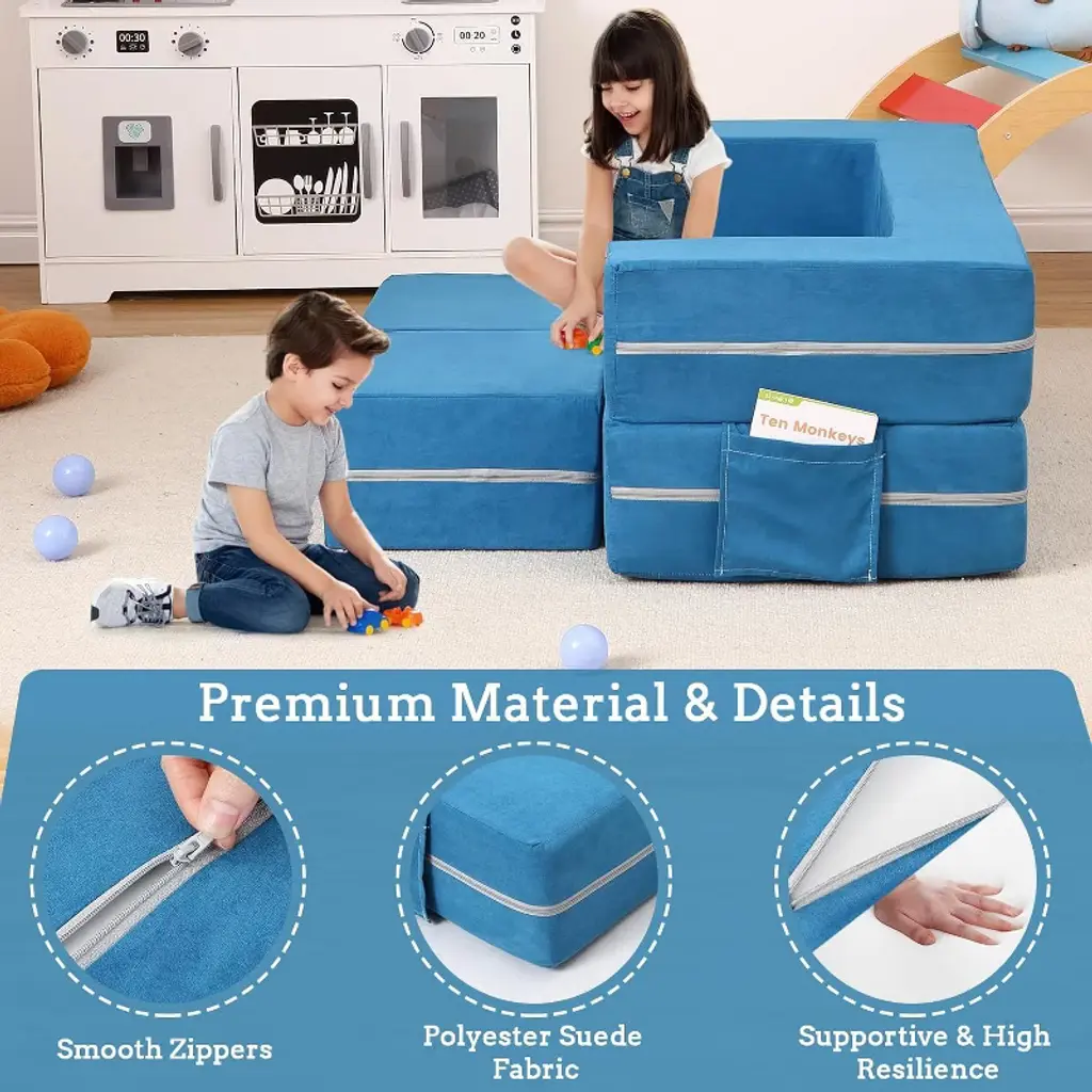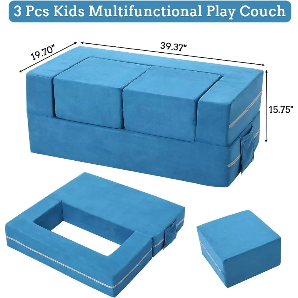 Acekool 3Pc Modular Kids Sofa, Convertible Toddler Couch Play Set, Soft Foam Kids Couch Bed For Reading, Playtime & Creative Spaces