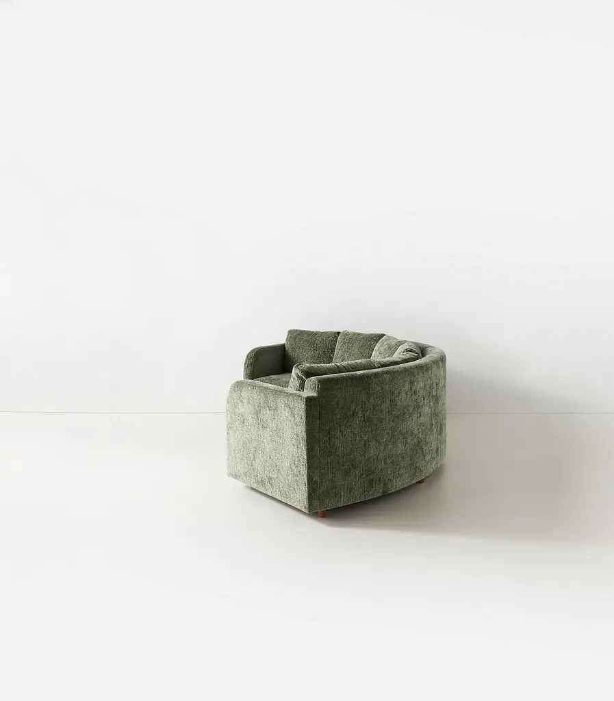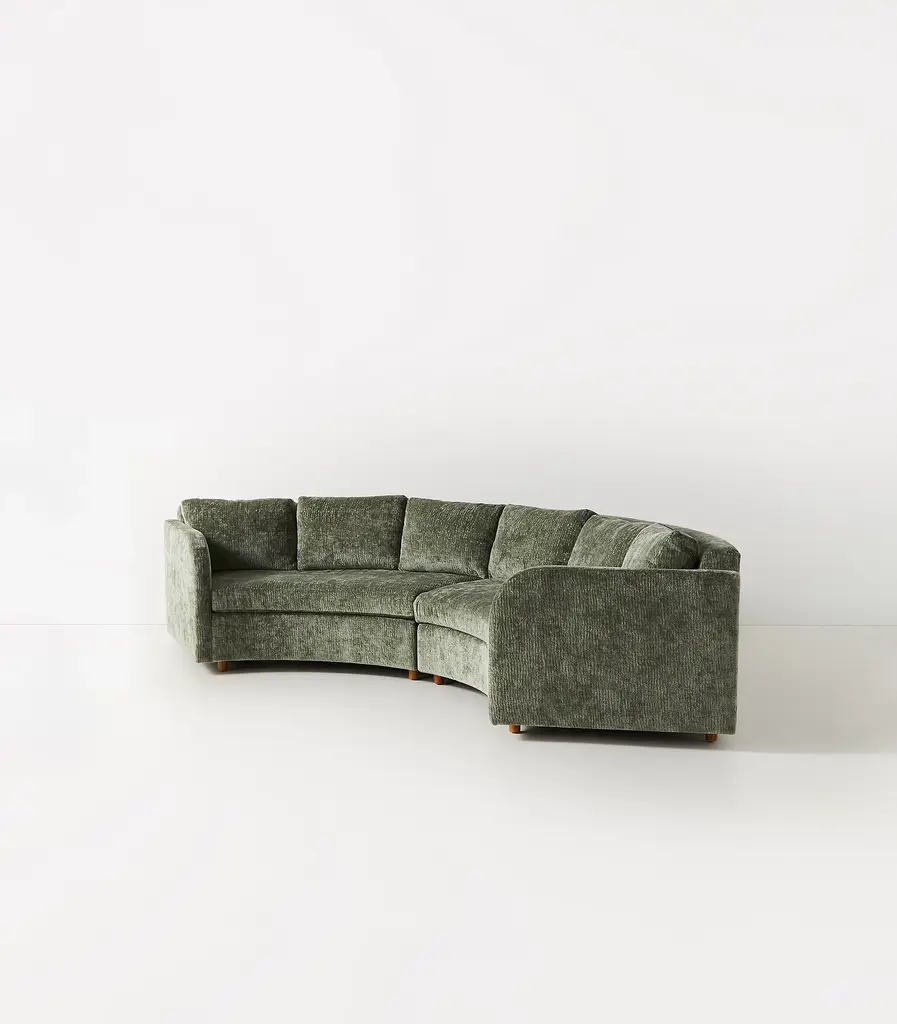 With an avant-garde, '70s-inspired silhouette, the Agnes Two-Piece Sectional is our flagship social pit-style sofa that defines open-concept interiors. Its crescent form is designed to encourage long conversations amongst guests, but is also conducive to stretching out and watching movies with the family. Finished with vertical channel tufting for a plush backdrop, this glamorous respite offers endless seating possibilities and unsurpassed cosmopolitan appeal. Ready to elevate your living room experience? Read our comfort guide so you can easily find the perfect sofa for your home, sweet home.