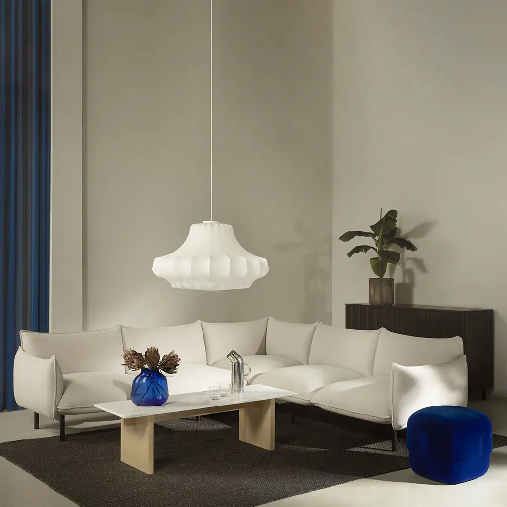 Gentle arches, plump cushions and an airy base are all dominant character traits of Normann Copenhagen's new modular sofa design, Ark. The design plays with curves and volume, giving Ark its recognizable features for an expression that is simultaneously minimalistic and full of depth.Ark appears almost as a sofa built solely from cushions, alluding to its soft, welcoming expression. The design seems to be divided into smaller, pillowed sections. The seat, back and armrests all appear to be separate, neatly arranged pillows. This unique composition contributes to Ark's embracing expression, while the simplicity of the design radiates sophistication and elegance.A recurring element in the design, Ark gets its name from the Danish word for arches. The subtle sway of the cushions creates a distinct, visual softness that gesticulates at the equally soft sitting comfort. A slight space between seat and floor infuses the design with airiness, while also presenting a practical advantage, providing easy access for cleaning below the sofa.