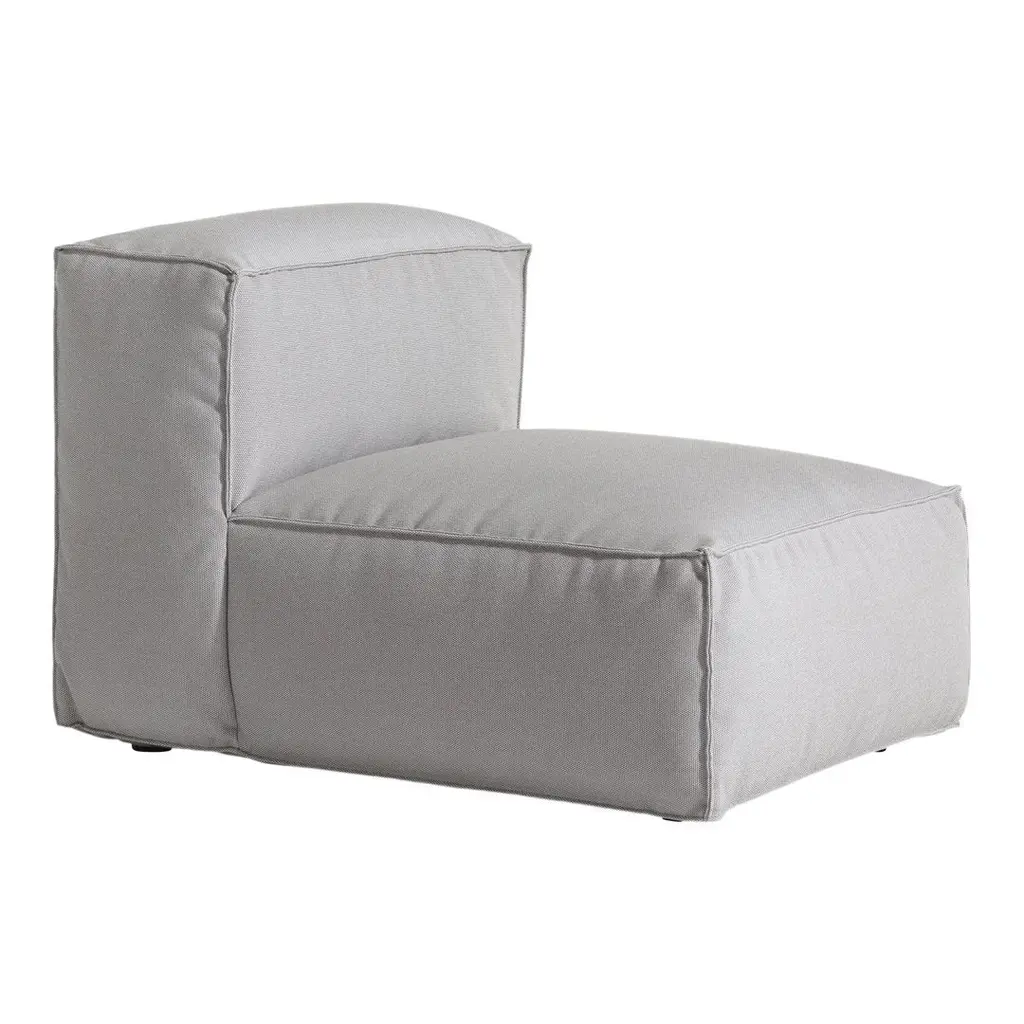 A boxy sofa range, for those who enjoy relaxing more than maintenance. The latter isn't an issue, since it has an aluminum frame, hidden under generous cushions in Quick Dry foam, covered in Sunbrella fabrics.
