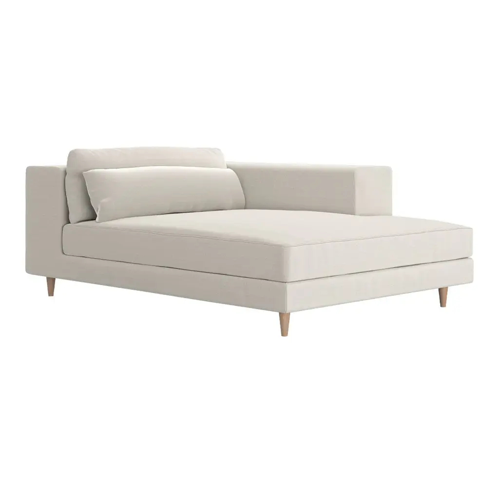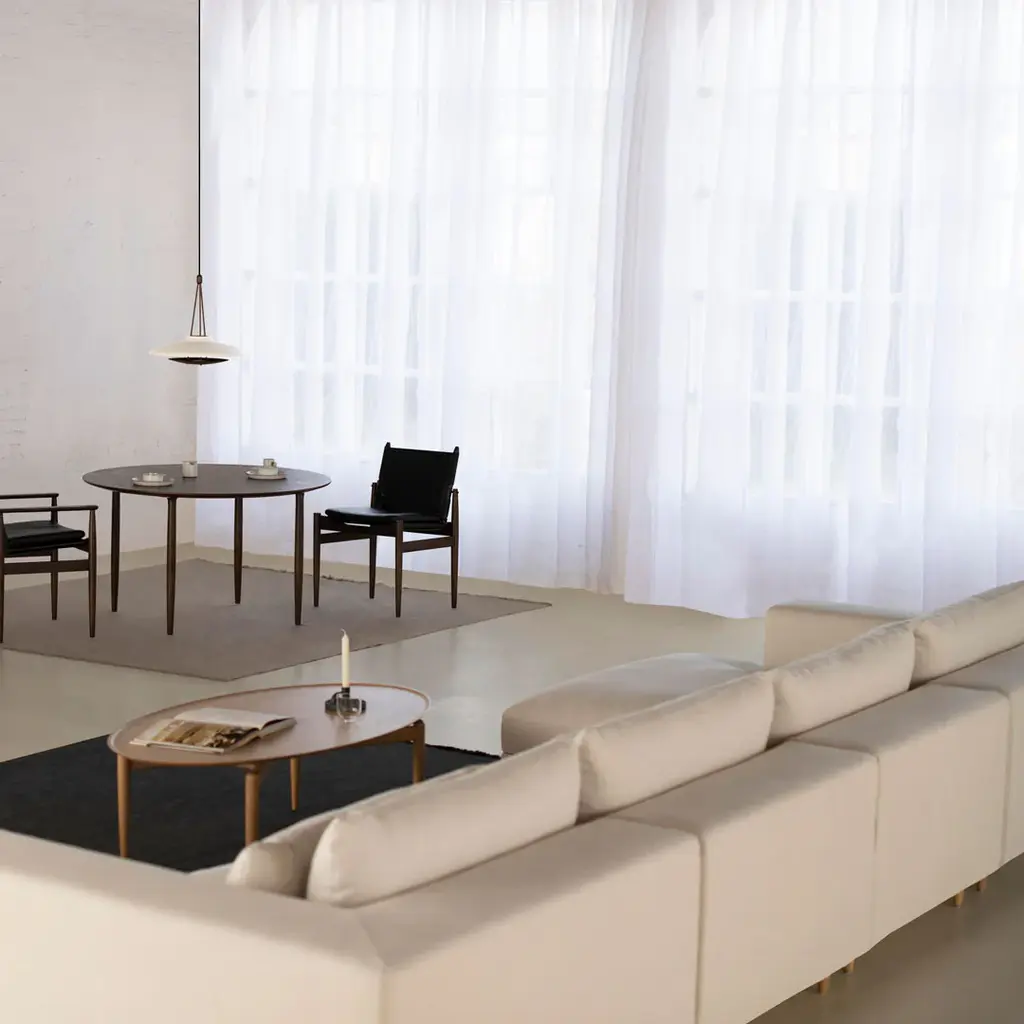 The Atelier Modular Sofa is an exercise in simplicity and casual elegance. The sofa is all about upholstery and refined sartorial detailing, high quality linen with a soft and generous touch, - inviting to relax and lounge. The Atelier Sofa has an added depth for lounging in a private residence and endless combinations of the 5 modules enables it to adapt to changing needs and conditions. The quiet, serene aesthetic makes it very easy to combine with other furniture of more complex nature and different materials. The deep armrest acts as a soft side table for a book, a pair of glasses or a telephone. Even though The Atelier Sofa has a clean and sophisticated look, - it is meant to be very functional and easy to maintain, - it has removable covers, which can be dry cleaned if needed. The soft and plump cushions can be moved around to enhance malleable comfort sitting or lounging.