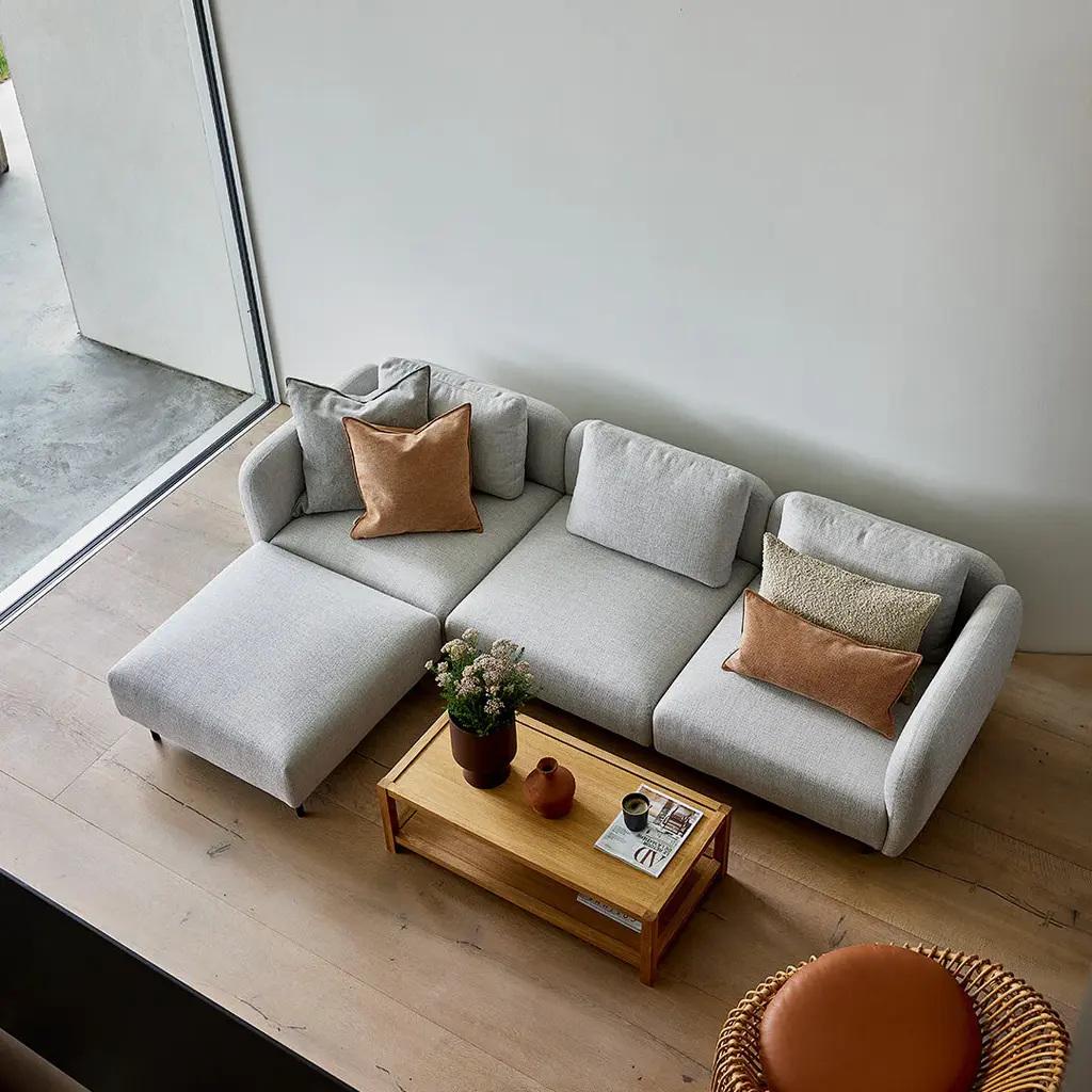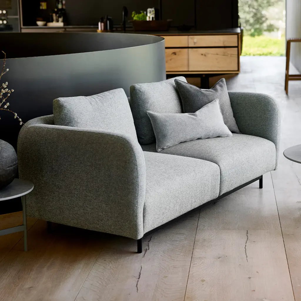 The Danish design duo Foersom +Hiort-Lorenzen MDD has designed Aura, an indoor lounge sofa with the perfect balance of elegance, quality and superb comfort. A flexible modular system that lets you play with your creativity to combine the elements to match your personal needs and space. Aura has a comfy modular-based design that consists of a sleek metal frame, which gives the lounge sofa a light and graceful lift. The soft cushions with down filling provide maximum seating comfort and soft touch to the appearance. Aura has a broad selection of fabric choices for the cushions, each providing different expressions to the elegant sofa.
