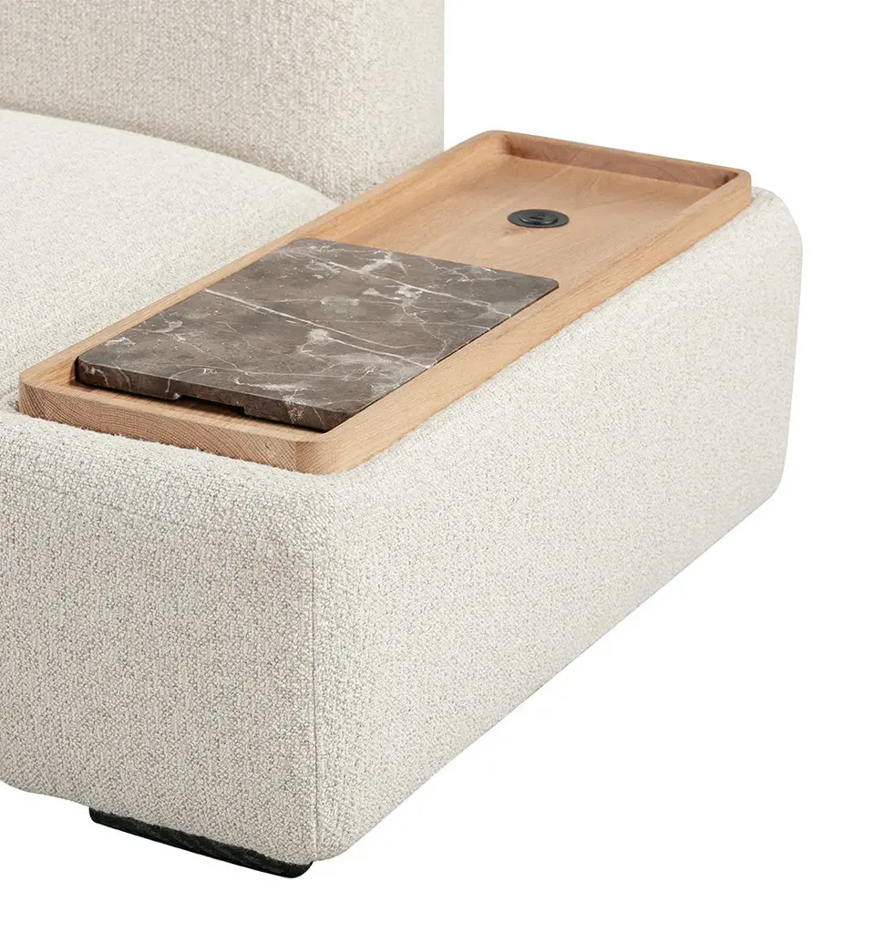 Drawing inspiration from the Japanese philosophy of ‘Boketto,' a practice rooted in the art of non-doing and peaceful reflection, the Boketto Sofa is defined by gently rounded rectangles, offering a soothing, cohesive look. Two diagonal modules add versatility to layouts, while narrow modules with trays provide a functional touch. Modules 1-8 and 17-19 sold separately.