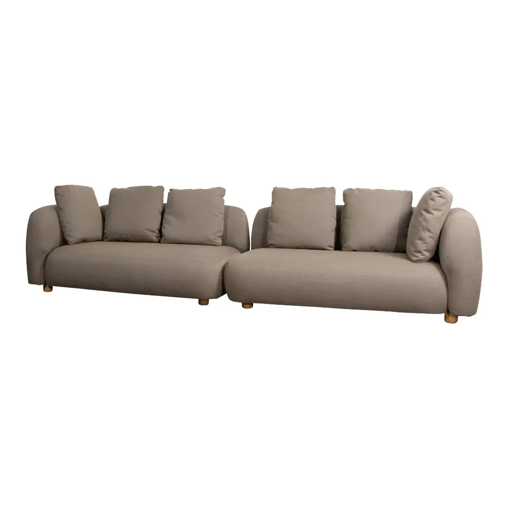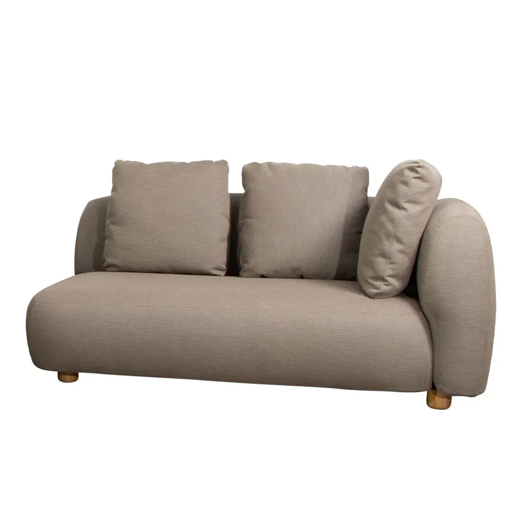 Capture is comfortable and informal lounge furniture for your outdoor space, with iconic soft shapes. A perfect balance between laid-back coziness and a modern curved design expression. Capture is a fully upholstered modular sofa, with resemblance to indoor lounges, made in durable weather resistant Cane-line AirTouch fabric. The sofa has a low seating height with an ideal depth and firm cushions made for your comfort which forms a great space for informal chats and togetherness. Let yourself get captured in the moment and just relax in a calm oasis.