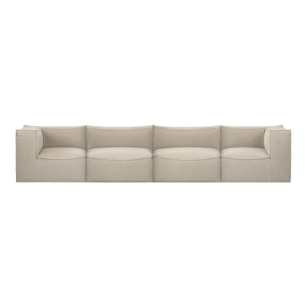 The embracing, beanbag-inspired shape of our low-slung Catena sofa is generously dimensioned for all-out relaxation and cosiness: we call it ‘low living'. The name Catena is inspired by the catenary curve, a u-like shape that a chain or cable adopts when supported only at its ends, and which is mirrored in the soft curves and top-stitched seams of the Catena sofa. With finely spun cotton-linen upholstery, the homely, module-based designs are made with innovative microcellular foam that ensures maximum comfort as well as durability. series comprises six individual modules that can be combined in multiple ways to create the desired expression. This item is part of our made to order customization concept. The materials have been handpicked in order to create this custom piece – the only one of its kind. Please note it cannot be exchanged or returned. Please note: This product is not available for UK delivery.