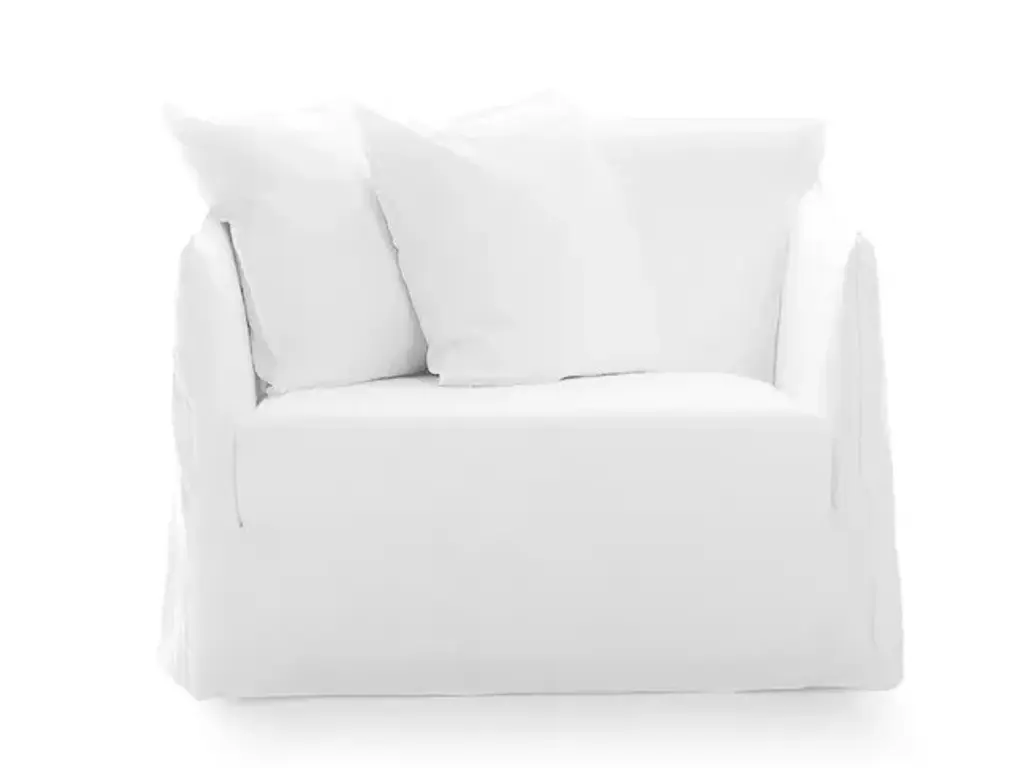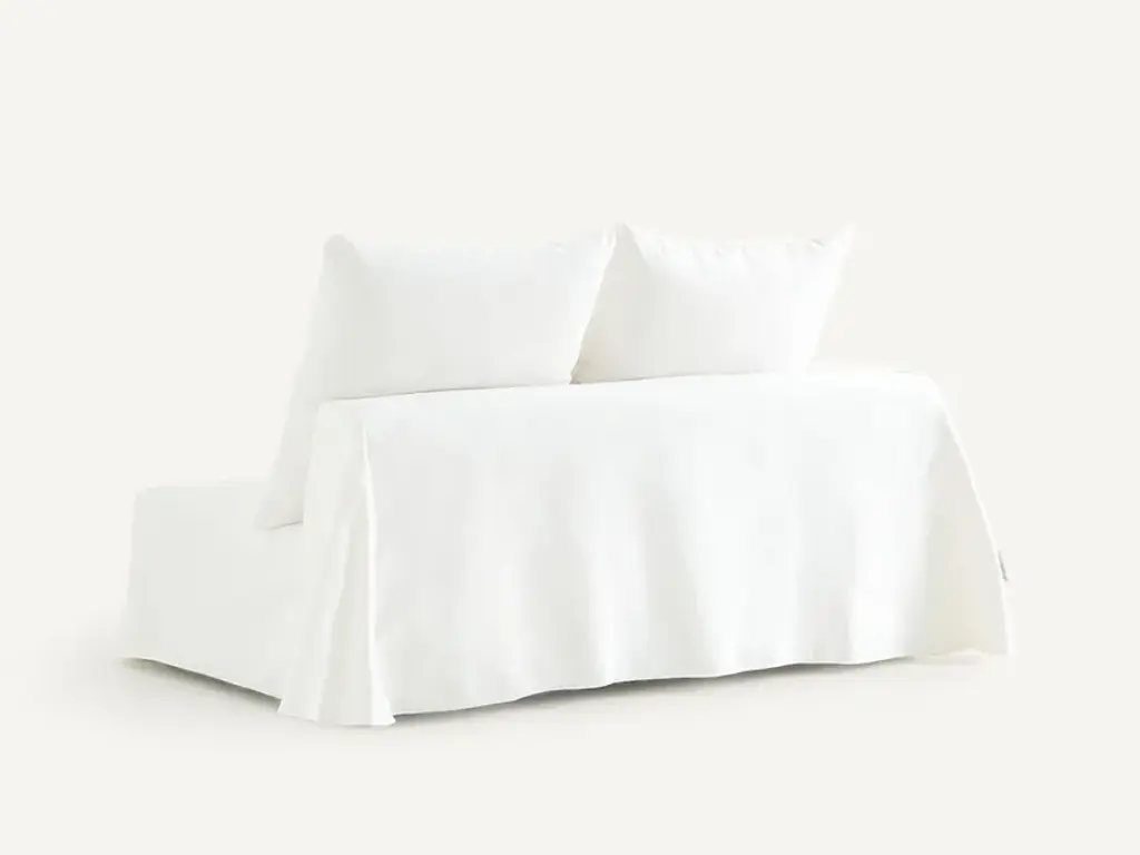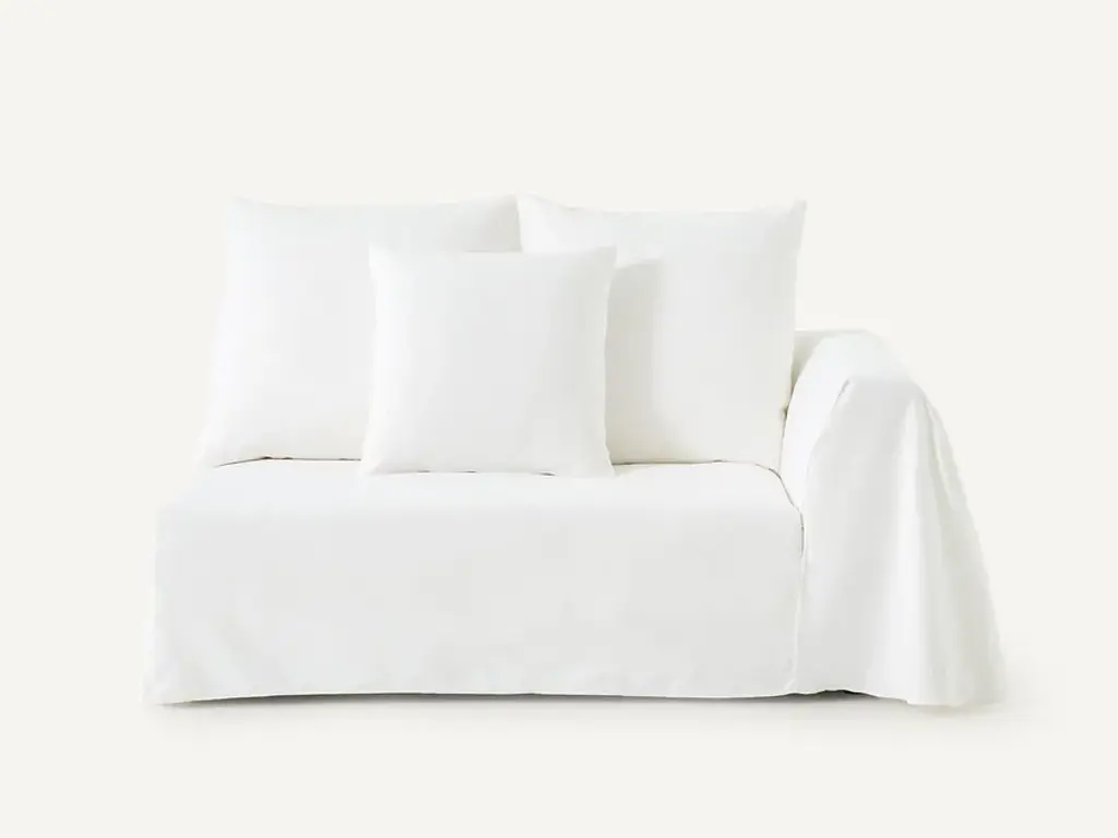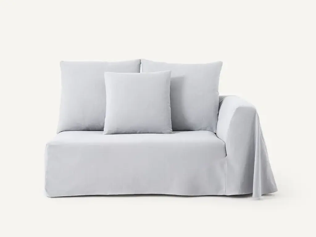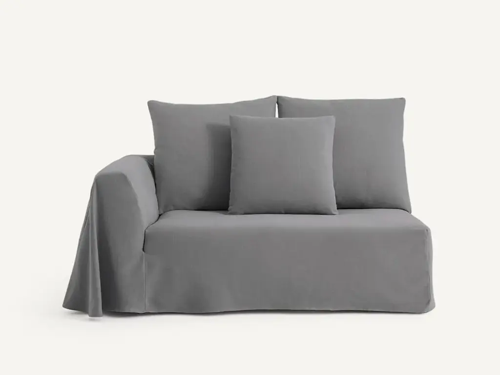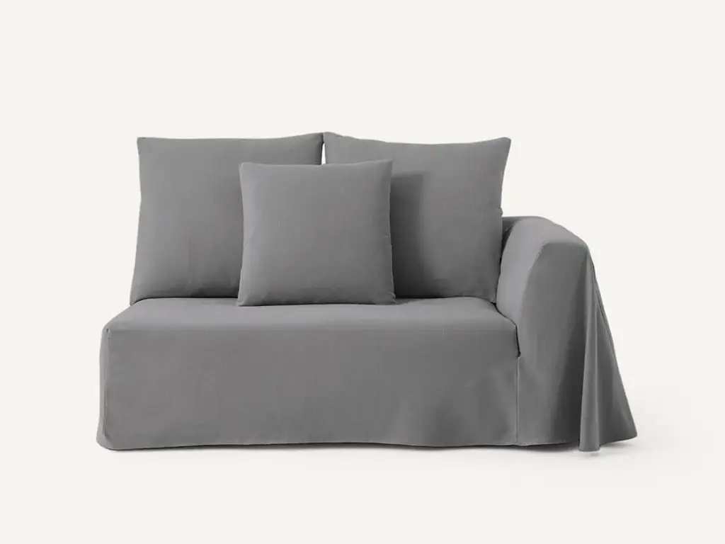 A modular and practical sofa, consisting of a compact element that you can join together at will to form a linear sofa, a corner sofa or a settee. Two types of covers are available to suit all styles: a close-fitting version for a pure and sophisticated look and a wider version for a casual and cosy look.The CHILL semi-couch is part of the ‘nomad escape’ collection designed by OTTO, an agency founded by architect and designer Paola Navone. Directed by Cristina Pettenuzzo and Domenico Diego, this collection with a bold and unique identity transforms the home into an oasis of well-being for all seasons.Features:Upholstery: 63% cotton, 37% linen 380 g/m2, lining, slightly wideTopstitched finishFabric samples available on site: type ‘Chill Samples’ into the search engineStructure: chipboard, plywood, solid spruce. FSC®-certified woodSuspension: elastic strapsRecycled polypropylene feet, black finishThe two parts of the corner can be joined together thanks to a metal coupling system (alloy of zinc, aluminium, magnesium and copper) underneath.