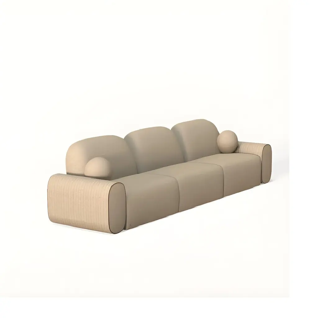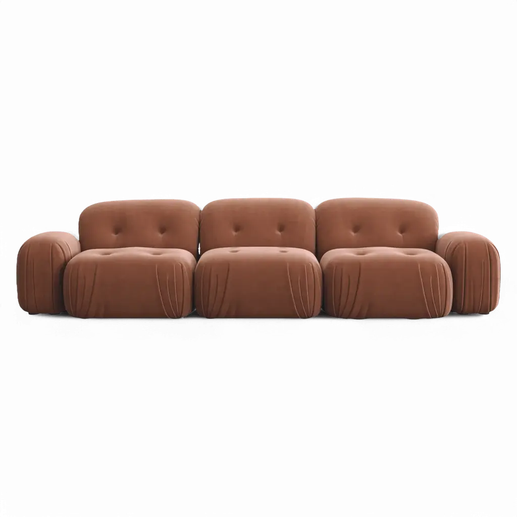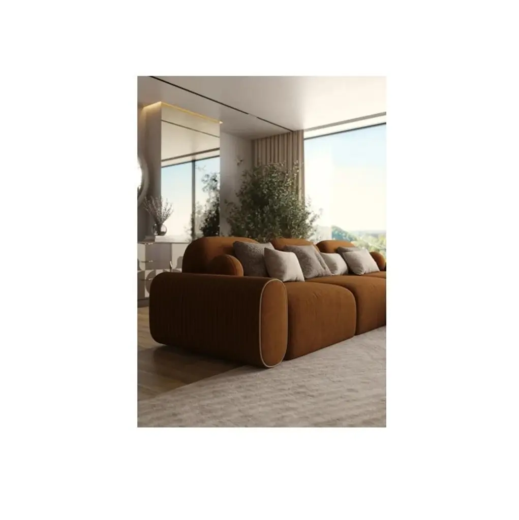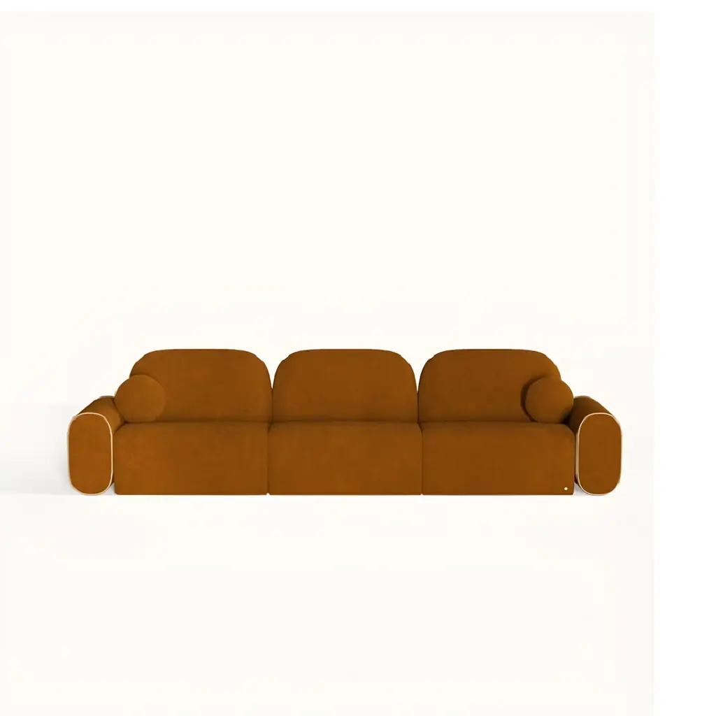 Crafted for both comfort and modern style, this striking sofa is upholstered in a luxurious deep red velvet. Its unique silhouette features three generously cushioned sections, creating a plush, inviting look. The design is softened by gentle curves and rounded edges, while a subtle trim elegantly outlines the arms, adding a touch of sophistication. This sofa seamlessly combines bold color with a refined, contemporary form, making it a stunning centerpiece for any living space.. Materials:Upholstery : Red Velvet and White PipingContact us to enquire about COM/COL production, requirements and material shipping instructions.Please contact us if you have any questions about customization and pricing. We will be glad to check with the factory’s technical team if sizes, finishes, and colors can be customized. We do our best to expedite production and to ship and deliver product within the listed lead time, however current lead times might be longer due to global shipping backlog and delays. These delays are out of our control and cannot be a reason to cancel an order.