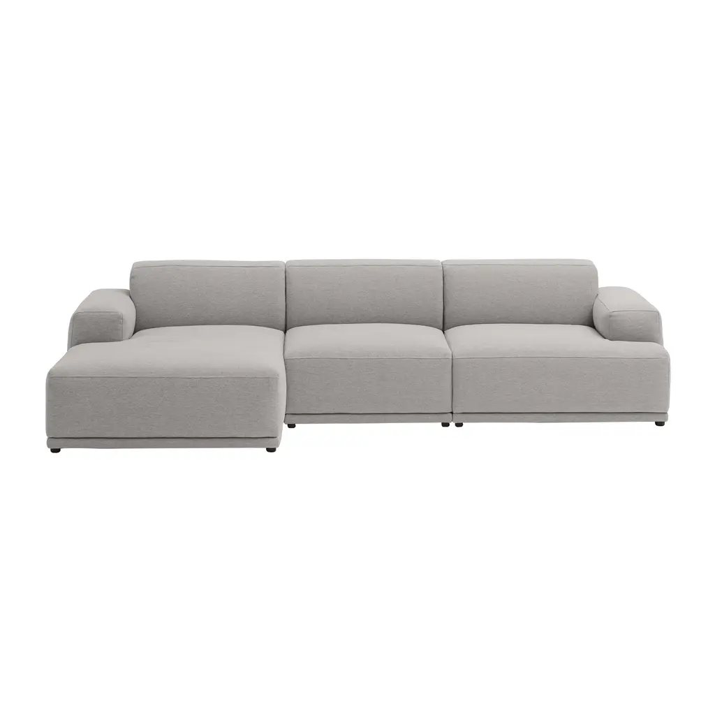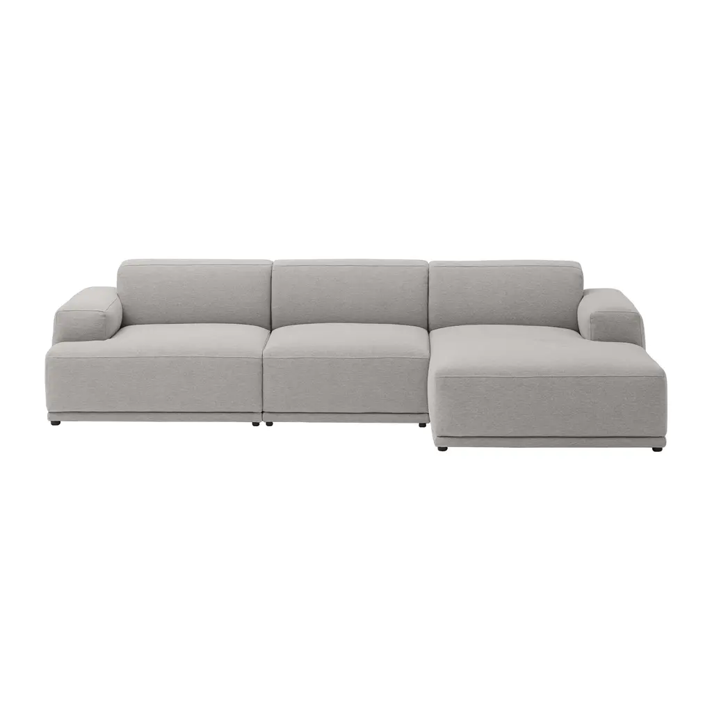 Assured proportions and a relaxed attitude typify the Connect range of 3-seater options in Muuto's signature modular seating. Comfort is built in with the deep cushioning shaped by precise cold-foam seat padding and an underlying wood frame, in the custom-upholstered standard sofa or left or right configurations with an expansive chaise.