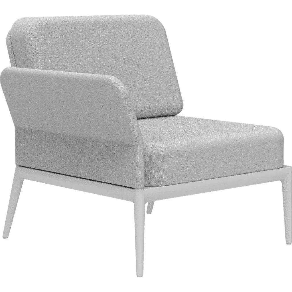 Cover White Right Modular Sofa by MOWEEDimensions: D83 x W80 x H81 cm (seat height 42 cm).Material: Aluminum and upholstery. Weight: 19 kg.Also available in different colors and finishes. Please contact us.An unmistakable collection for its beauty and robustness. A tribute to the Valencian manufacturing tradition as a challenge to innovation, making it sustainable and durable. Elegance. Simplicity. Comfort. A unique collection, different, distinguished, with character. An endless number of colors for all tastes and spaces.Möwee is part of the work, effort and commitment of Gaviota, a leading company in the outdoor sector. It was set up as an independent venture to broaden horizons in the outdoor furniture world, with its own distinctive character and way of doing things. Freshness, simplicity, quality and design are at the heart of its DNA.