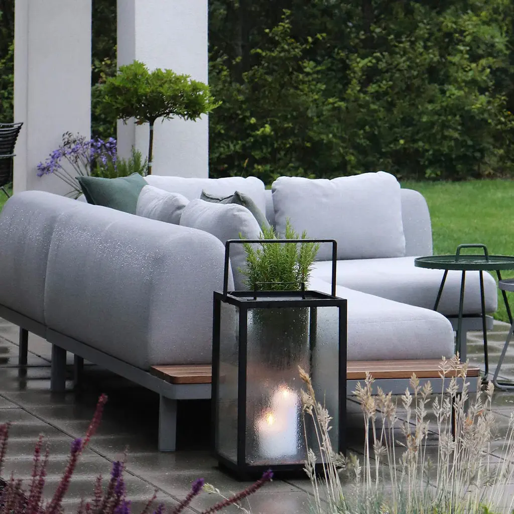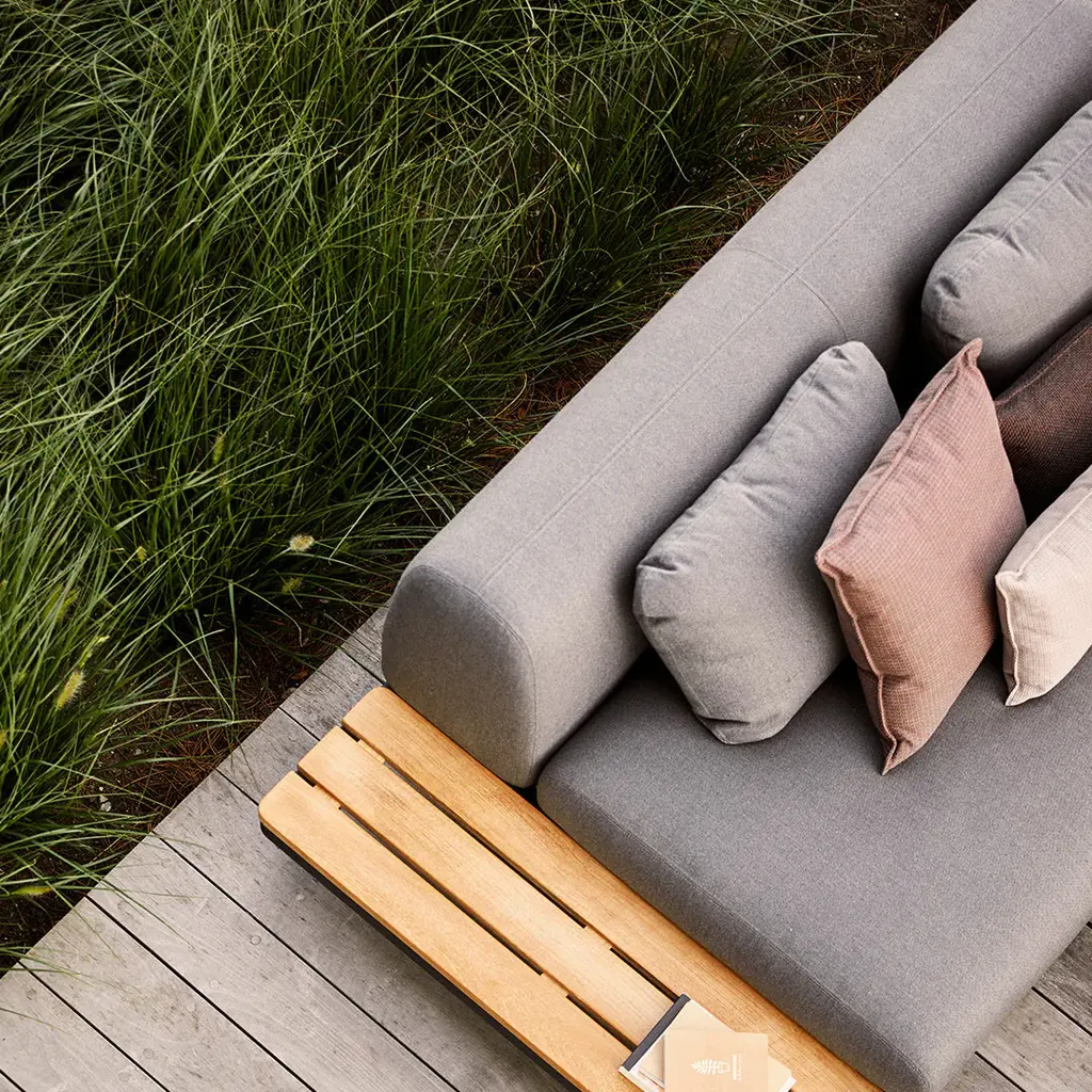 Cushion for Space Modular Sofa. Space is a lounge concept in a modern and Scandinavian design. The concept adds a new dimension to modular lounge sofas where one is capable of changing materials and functions and thereby the look. Space can stand as a lounge sofa, but one can also change the back and side modules into tables, so the lounge sofa can even change into a sunbed. The table plates are of either certified teak or solid surface material, the fabric is the soft and comfortable Cane-line AirTouch. This innovative and contemporary lounge concept is designed by the Danish design duo Foersom + Hiort-Lorenzen MDD.