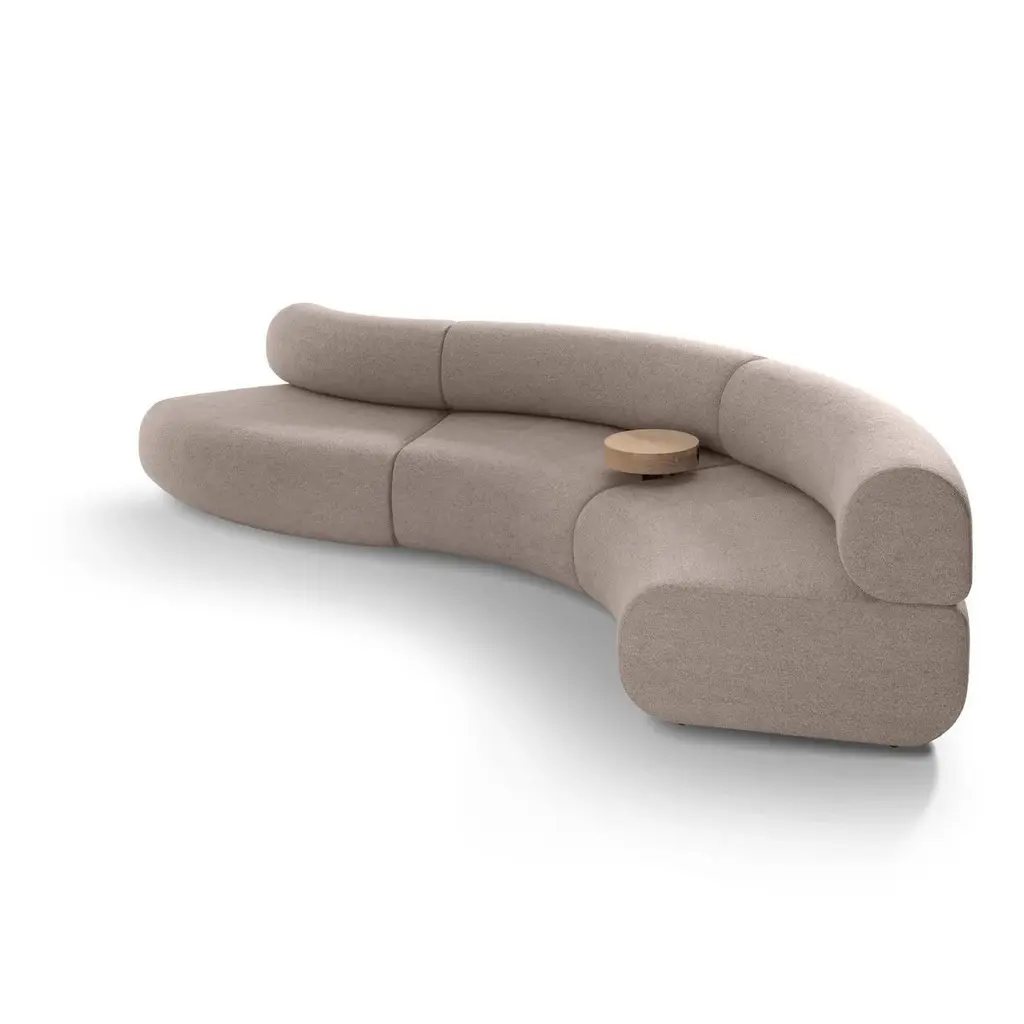 Track is a modular sofa concept with an iconic and sculptural approach. The floating rock-like formations create a comfortable landscape of small seating islands that will become the center of attention in any interior. A solid foam construction to maintain a sharp appearance with high comfort. The sofa consists of two parts; a solid seating and an almost floating backrest creating a mesmerizing shadow drop on both sides. Furthermore it is possible to create a versatile collection with extended options for loose armrests and beautifully designed electrical components.UpholsteryUpholstery category vwxDue to the organic shapes of Track, we recommend the following fabrics:Artifort Selecte, Artifort Lana and the following fabrics from Kvadrat:Gentle, Hallingdal, Mizmaze, Tonus and Uniform Melange.Each individual Track module is fully upholstered in one single fabriccolour. When selecting a combination comprising two or more modules,you can combine several fabric colours in the same fabric.We do not offer dual upholstery on one single module. (for example: wedo not offer the seat and back rest in different fabrics or colours).Depending on the chosen upholstery, after a while pleats will appear.This cannot be avoided.BaseTrack comes with steel legs and adjustable feet. This allows for a gap ofaround 3 cm between the base of the sofa and the floor. The bottom ofthe adjustable feet is covered in felt. The steel legs are powder-coatedin the colour P10 Black (RAL 9005 structure). The ‘seat & back’ and 45°‘corner’ modules have four legs. The ‘corner’ 90° modules have five legs.Product detailsThe sofa is made from two upholstery parts - a seat and a backrest both designed with comfort and support in mind. Both elements are designed as two organic drops, shaped individually with one balancing on the edge of the other, creating a contour that is simple yet strong – a shape that just balances on that point where the product stands out as something special, but can blend into most situations. Modules and configurations Track’s versatile modules give you total freedom to create inspiring spaces for waiting, meeting, lounging and collaborating. Configurations can be created with several straight and corner modules. Each module can be connected. Add the round Track pouffe for a playful composition. Electrification Power outlets are integrated in a beautifully designed round oak wooden table element. The table with electrification outlets can be placed between two seating elements. The wooden table is finished in one of Artifort’s oil colours.