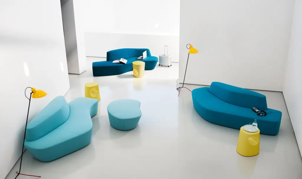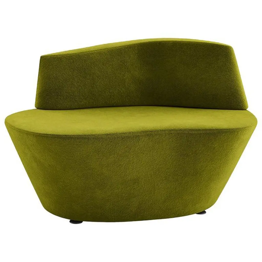 Polar is a seating system inspired by the icebergs of the northern seas. Its components all feature solid volumes and oblique lines, which can be combined to create sofas and armchairs, with or without backrests. Versatile, cosy and aesthetically striking, the system is perfectly complemented by Polar coffee table.Internal frameSeat frame: poplar plywood 18mm thick with elastic belts, with fiberboard timber lateral frame.Back frame: cold foam with metal inserts.PaddingSeat: cold foam, with lateral covering with polyurethane foam.Back: cold foam.Base: aluminium feet.Offered with and without back. Many different upholstery materials.Two configurations together: OPOLA234 + OPOLC234.