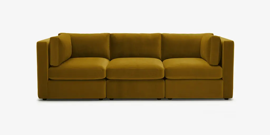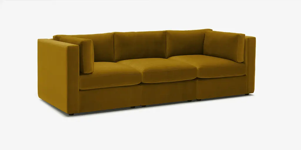 Laze about, but do it in style. The Daya Modular Sofa brings contemporary flair to this adaptable modular living room staple. Comprised of 2 single arm chairs and 1 armless chair clipped into place, this contemporary modular sofa, with its plump cushions, concealed peglegs, high arms and back is ready for all your binge-watching marathons.