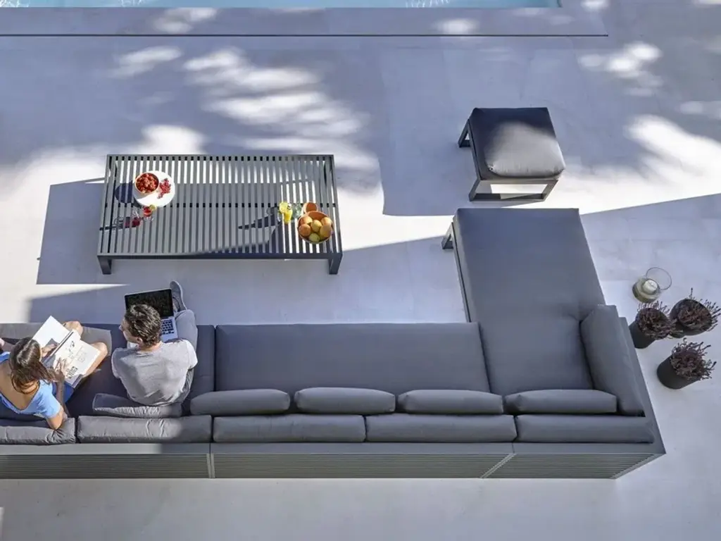 “I have always felt attracted by the patterns of light and shadows filtering through Mediterranean shutters, as well as by the work of certain architects from the Far East who work with wooden slats and bamboo cane. DNA is an outdoor furniture collection that reinterprets the essence of these horizontal shapes.”José A. Gandía-BlascoDNA is a collection of outdoor furniture inspired by the subtle play of the modulations of light and shadows filtering through Mediterranean shutters and it praises the shadows of Japanese aesthetics in traditional and contemporary architecture – the positive and the negative dispossessing any superfluous adornment.Made of anodized or thermo-lacquered aluminium profiles. Polyurethane foam rubber covered with water-repellent fabric. Removable fabric cover.Collections colour sample: anodized, white, agate grey, cement grey, sand, bronze, wine red, blue grey, grey blue, signal grey, anthracite and black.