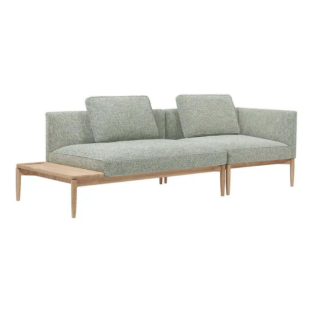 Includes 1 large and 1 small cushion A streamlined wooden frame and unparalleled upholstered comfort strike the perfect balance on the flexible, modular Embrace Sofa, designed by EOOS to adapt to our changing needs and real-life situations.