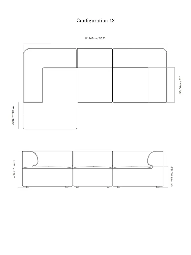 Eave Modular Sofa, 3-Seater, Configurations 11-12