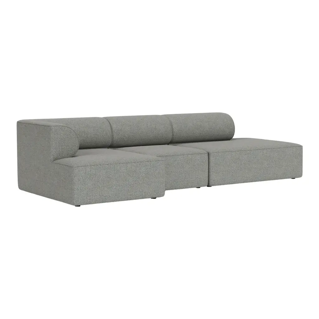 The Eave Modular Sofa 3-Seater Configurations 9-10 from Audo Copenhagen redefine contemporary living spaces through expansive proportions and architectural sophistication. Designed by the acclaimed Norm Architects studio, these thoughtfully composed arrangements combine an open section module with both an open end module and a chaise lounge module to create distinctive three-seaters that balance visual lightness with exceptional versatility. The design takes its name from the "eaves" of a roof a concept elegantly expressed in the curved backrests that create a protective, embracing sensation. Configuration 9 positions the chaise lounge on the right side with the open end module on the left, while Configuration 10 reverses this orientation providing flexibility for different spatial contexts and traffic flow patterns. Both configurations create substantial seating that encourages different postures and activities. The asymmetrical composition creates visual interest while providing practical functionality that adapts to contemporary living patterns. Beneath the refined exterior lies exceptional craftsmanship a framework of pine, plywood, and MDF supports a system of no-sag springs and high-resilience foam that delivers consistent comfort while maintaining its shape through years of use. The thoughtfully designed seat proportions strike the perfect balance between support and relaxation, while the open end and chaise sections provide distinct seating experiences within a cohesive whole. Available in a range of premium upholstery options, these configurations allow for personalization while maintaining their distinctive architectural character. Ideal for defining the primary seating area in spacious living environments, creating sophisticated lounge spaces in hospitality settings, or establishing dynamic conversation areas in open-concept spaces, Configurations 9-10 exemplify Norm Architects' "soft minimalism" approach where every curve and proportion serves both aesthetic and functional purposes in equal measure. These complete arrangements offer turnkey solutions for those seeking sophisticated seating options that balance comfort with visual refinement, embodying the thoughtful versatility that defines the entire Eave collection.