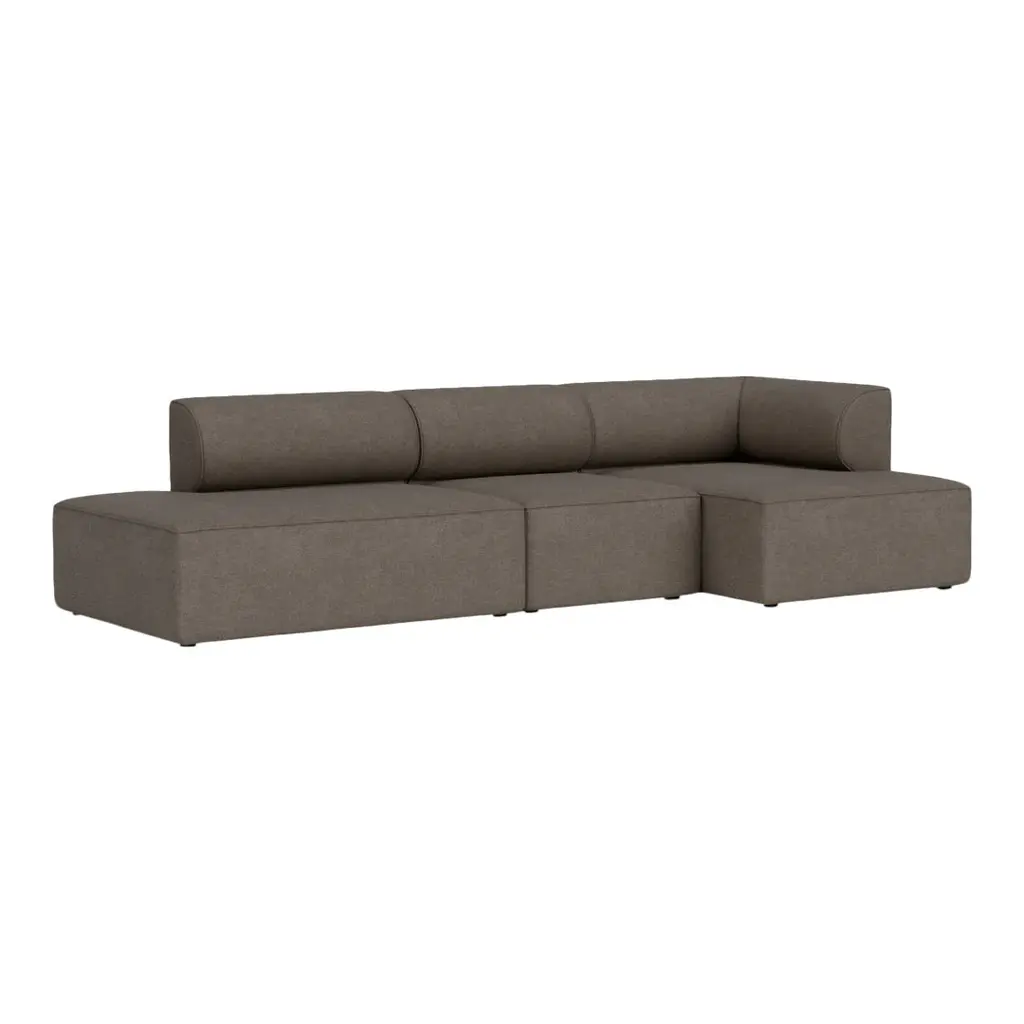 The Eave Modular Sofa 3-Seater Configurations 9-10 from Audo Copenhagen redefine contemporary living spaces through expansive proportions and architectural sophistication. Designed by the acclaimed Norm Architects studio, these thoughtfully composed arrangements combine an open section module with both an open end module and a chaise lounge module to create distinctive three-seaters that balance visual lightness with exceptional versatility. The design takes its name from the "eaves" of a roof a concept elegantly expressed in the curved backrests that create a protective, embracing sensation. Configuration 9 positions the chaise lounge on the right side with the open end module on the left, while Configuration 10 reverses this orientation providing flexibility for different spatial contexts and traffic flow patterns. Both configurations create substantial seating that encourages different postures and activities. The asymmetrical composition creates visual interest while providing practical functionality that adapts to contemporary living patterns. Beneath the refined exterior lies exceptional craftsmanship a framework of pine, plywood, and MDF supports a system of no-sag springs and high-resilience foam that delivers consistent comfort while maintaining its shape through years of use. The thoughtfully designed seat proportions strike the perfect balance between support and relaxation, while the open end and chaise sections provide distinct seating experiences within a cohesive whole. Available in a range of premium upholstery options, these configurations allow for personalization while maintaining their distinctive architectural character. Ideal for defining the primary seating area in spacious living environments, creating sophisticated lounge spaces in hospitality settings, or establishing dynamic conversation areas in open-concept spaces, Configurations 9-10 exemplify Norm Architects' "soft minimalism" approach where every curve and proportion serves both aesthetic and functional purposes in equal measure. These complete arrangements offer turnkey solutions for those seeking sophisticated seating options that balance comfort with visual refinement, embodying the thoughtful versatility that defines the entire Eave collection.