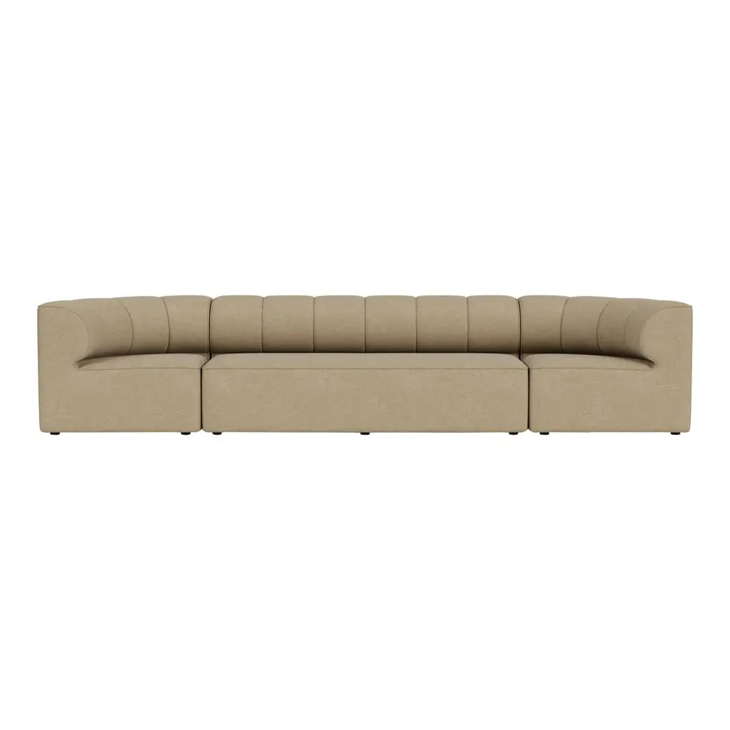 The Eave Seamline Modular Sofa 4-Seater from Audo Copenhagen delivers sophisticated simplicity through thoughtfully pre-configured modules that eliminate guesswork while maintaining design excellence. Created by the acclaimed Norm Architects studio, this refined arrangement combines three expertly designed modules into a cohesive four-seater sectional that adapts effortlessly to a wide variety of living environments. The design builds upon the architectural inspiration of the Eave collection while introducing the distinctive seamline detailing that gives this series its name. This configuration features clean, architectural lines softened by meticulous stitch details that add subtle personality without overwhelming its surroundings. The perfectly proportioned rounded backrest creates an ideal balance between supportive structure and inviting comfort, accommodating various sitting postures from engaged conversation to relaxed lounging. The neutral aesthetic ensures seamless integration with diverse interior styles while maintaining a distinctive presence through its thoughtful proportions and craftsmanship. Exceptional construction defines every aspect of this arrangement from the robust internal structure of pine, ply wood, and MDF to the system of no-sag springs and high-resilience foam that delivers consistent comfort while maintaining its shape through years of use. The precisely engineered seat height and depth create an ideal ergonomic experience that supports proper posture while encouraging relaxation. Available in a range of premium upholstery options, this four-seater allows for personalization while maintaining its distinctive architectural character. Perfect for creating primary seating in living rooms, establishing sophisticated conversation areas in hospitality settings, or defining zones within open-concept spaces, this pre-configured solution combines the versatility of modular design with the convenience of a turnkey arrangement. The Eave Seamline 4-Seater embodies Norm Architects' philosophy of thoughtful simplicity where every stitch and proportion serves both aesthetic and functional purposes in equal measure, creating furniture that enhances daily living through beauty and comfort.