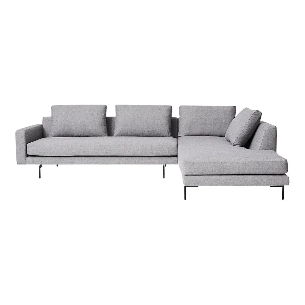 The Edge V2 Sofa takes its origin point in the idea of lines, running between its frame and cushion for a slight, elegant gap, across its linear armrests and throughout its soft, loose pillows. The design floats on a delicately designed base of steel.