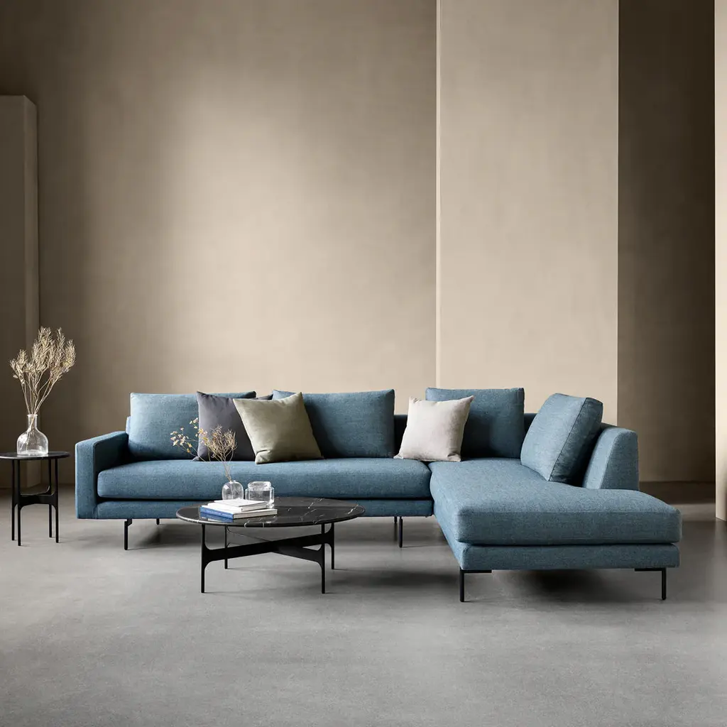 The Edge V2 Sofa takes its origin point in the idea of lines, running between its frame and cushion for a slight, elegant gap, across its linear armrests and throughout its soft, loose pillows. The design floats on a delicately designed base of steel.