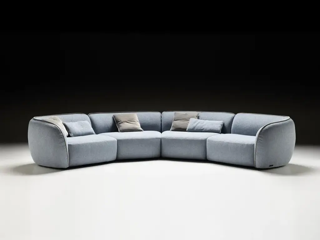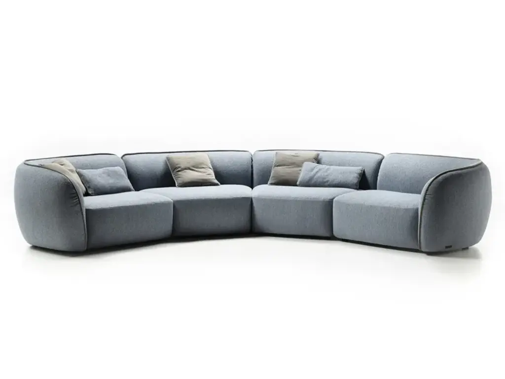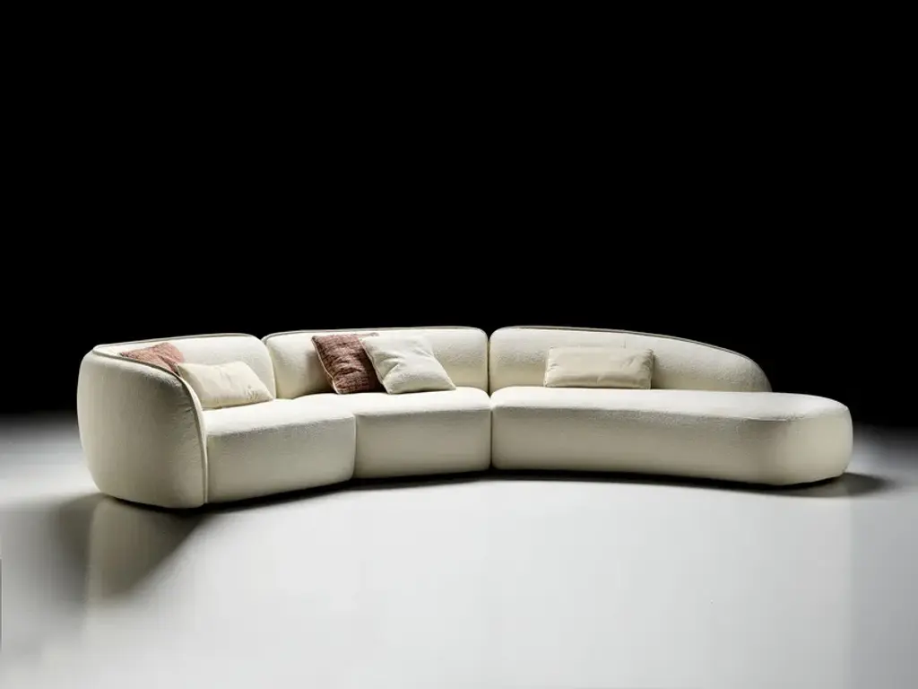 Fabric: Karma Bouclè fabric col.01Erasmo is a modular fabric sofa with structure in poplar wood, with crossed elastic belt spring system. Padding in high-density expanded polyurethane, upholstery in thermo-bonded fibre with stretch jersey. Fully removable fabric covers. A modular sofa with enveloping and sinuous shapes: Erasmo is a perfect synthesis of classic and modern lines, elegantly highlighted by the creasing of the armrest that discreetly follow the composition. The softness of the fabrics welcomes the seat, made even more inviting by the deliciously curved shape, which embraces the most private conversations. The skilful modularity of Erasmo allows for infinite combinations: the detail of the open, convex or concave end peninsula let the sinuous shape of the sofa to be adapted to the environment, in order to express at best any ideal of refined comfort.