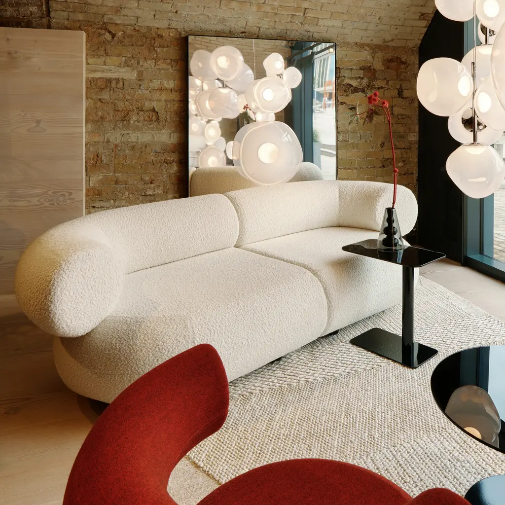 The Fat Modular Sofa is a seating system designed for adaptability in various environments. Its modular components allow for customizable configurations, making it suitable for both home and commercial spaces. The sofa features generous proportions, integrated armrests, seamless upholstery, and rounded edges. Constructed with a full foam design for maximum comfort and supported by a powder-coated steel base for durability, the sofa is available in a wide range of fabric options.