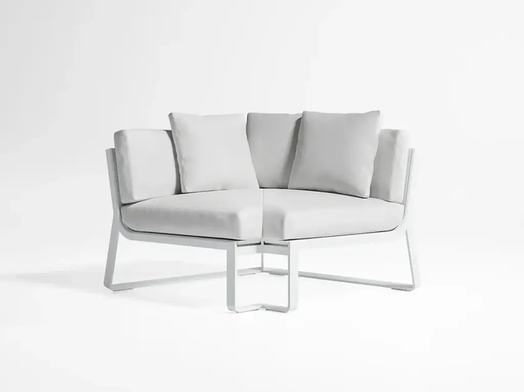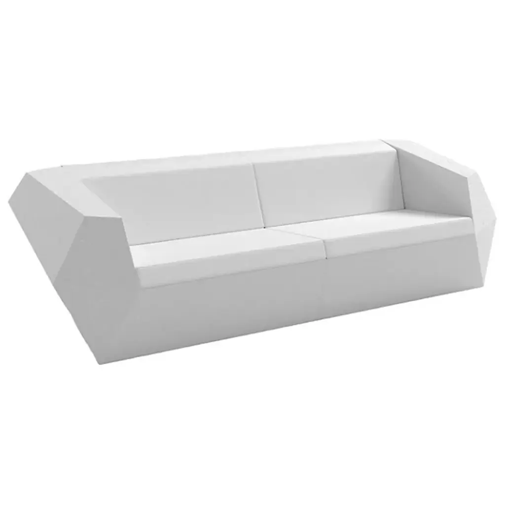 This Faz 2 Seater Outdoor Modular Sofa by Vondom features timeless, mineral, and emphatic shapes that blend perfectly into interior and outdoor environments. Made of rotational molded resin, polyethylene, and soft acrylic fabric, it is suitable for both interior and exterior use. The 100% recyclable material is perfect for creating a blissful atmosphere and is designed for maximum comfort. With adjustable modularity, you can adapt the piece to your style and needs, all while keeping a cohesive look. Experience beauty and sophistication with this exquisite sofa set.