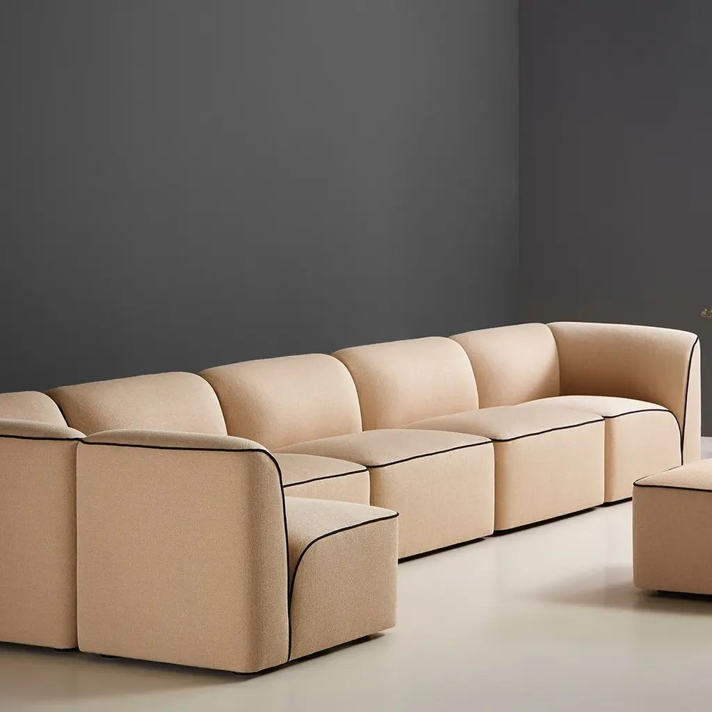 The Flora modular sofa is inspired by the natural shapes of vegetation and how petals of flowers grow in organic ways. With this concept in mind, the Spanish design studio Yonoh wanted to develop a modular sofa series with the outlines of a petal flower. Designed by compose perfectly while staying organic and soft shaped. The result is four different modules with the distinctive black piping and an armrest cushion, which allows for an unlimited number of combinations. Fire retardant foam is available upon request. Please contact us for further information.