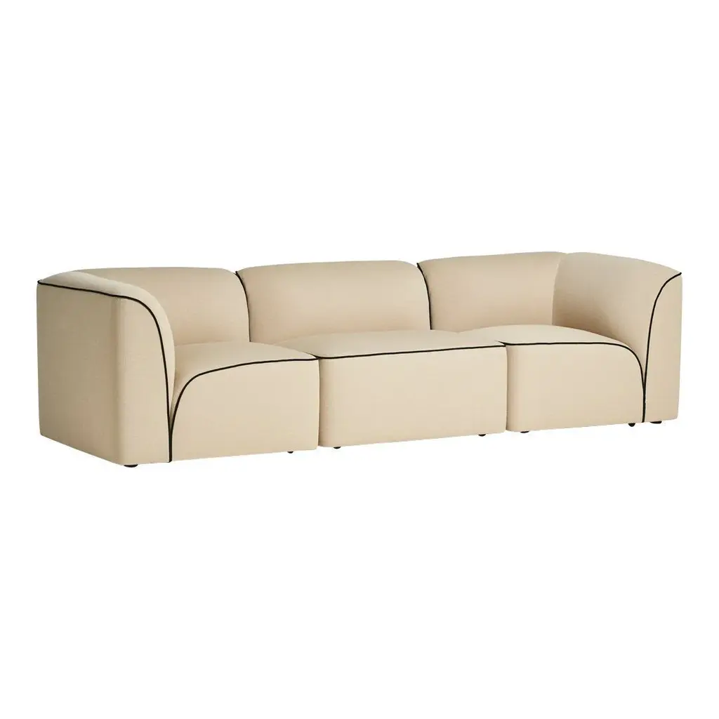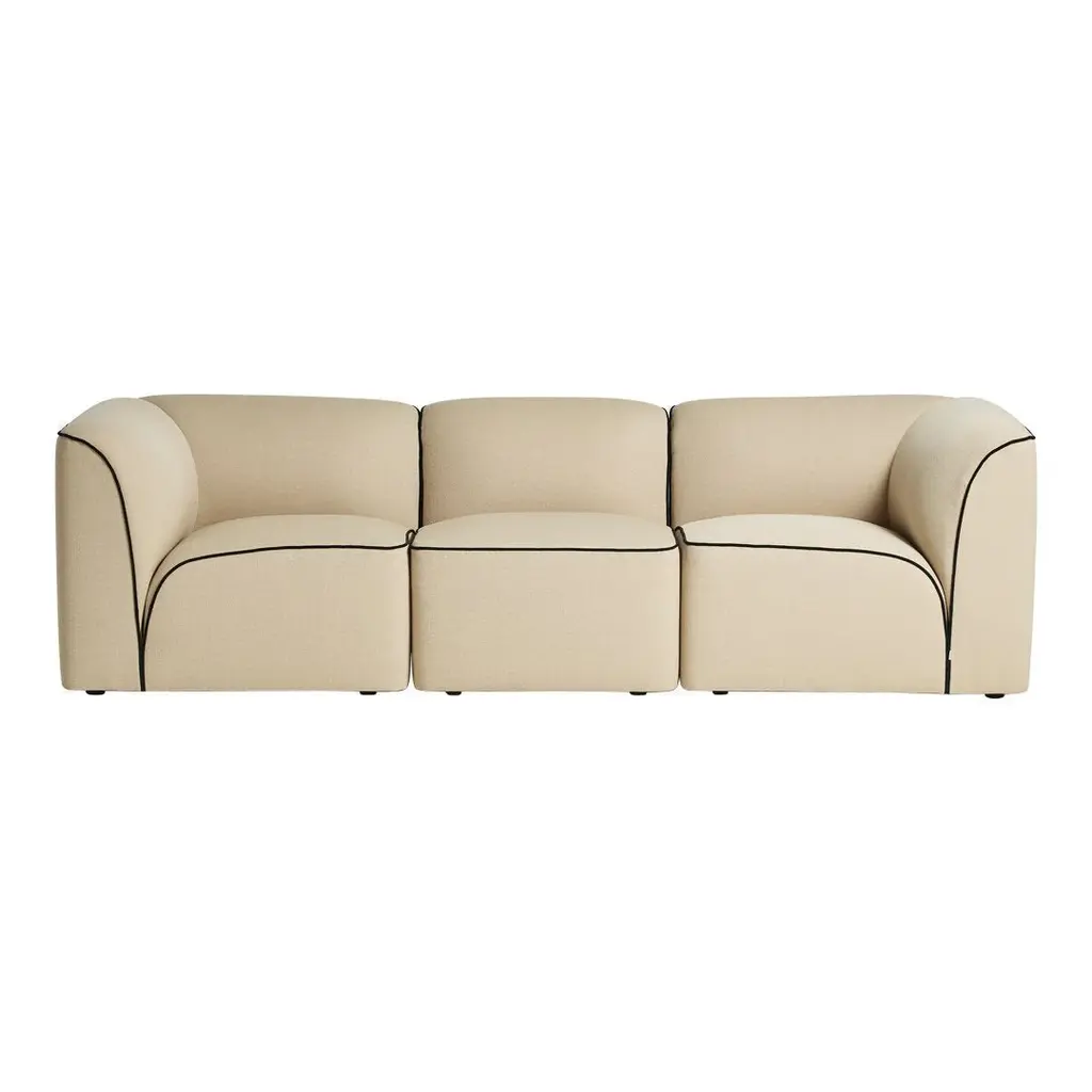 The Flora modular sofa is inspired by the natural shapes of vegetation and how petals of flowers grow in organic ways. With this concept in mind, the Spanish design studio Yonoh wanted to develop a modular sofa series with the outlines of a petal flower. Designed by compose perfectly while staying organic and soft shaped. The result is four different modules with the distinctive black piping and an armrest cushion, which allows for an unlimited number of combinations. Fire retardant foam is available upon request. Please contact us for further information.
