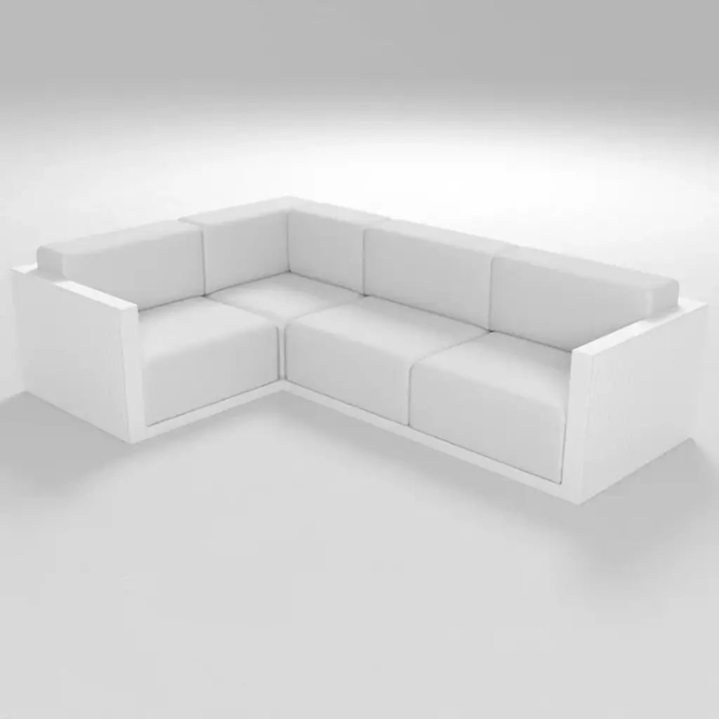 Introducing the Gatsby 4 Seater Outdoor Modular Sofa, designed by Ramón Esteve for Vondom. Inspired by the Art Déco era, this piece captures the spirit of The Great Gatsby and the extravagance of the roaring 20s. It features a high back and two armrests on each end for ergonomics and comfort. Crafted with padded foam, rotational molded polyethylene, and soft acrylic outdoor fabric, the sofa is perfect for both indoor and outdoor use as it can withstand the elements.