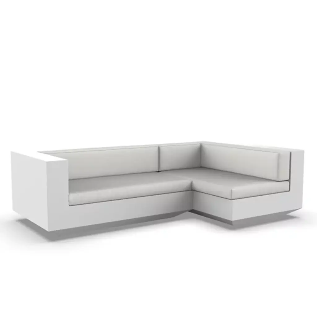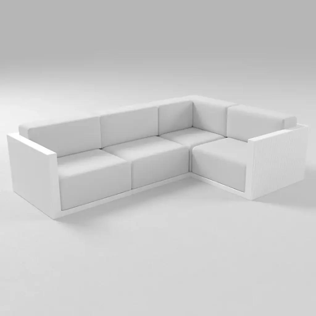 Introducing the Gatsby 4 Seater Outdoor Modular Sofa, designed by Ramón Esteve for Vondom. Inspired by the Art Déco era, this piece captures the spirit of The Great Gatsby and the extravagance of the roaring 20s. It features a high back and two armrests on each end for ergonomics and comfort. Crafted with padded foam, rotational molded polyethylene, and soft acrylic outdoor fabric, the sofa is perfect for both indoor and outdoor use as it can withstand the elements.