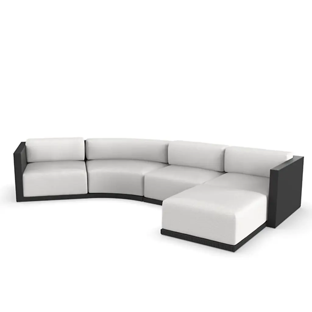 The Gatsby Modular Sofa & Puff 5-Seater by Vondom effortlessly captures the essence of the Art Déco era. Designed by Ramón Esteve, its sleek lines and soft, leather-like nautical upholstery evoke a sense of luxury and comfort. Made from fully recyclable, durable materials, this versatile sofa is perfect for both indoor and outdoor settings. Picture it in your living room or on the patio, inviting friends for gatherings and creating a stylish space to relax and enjoy life's moments.
