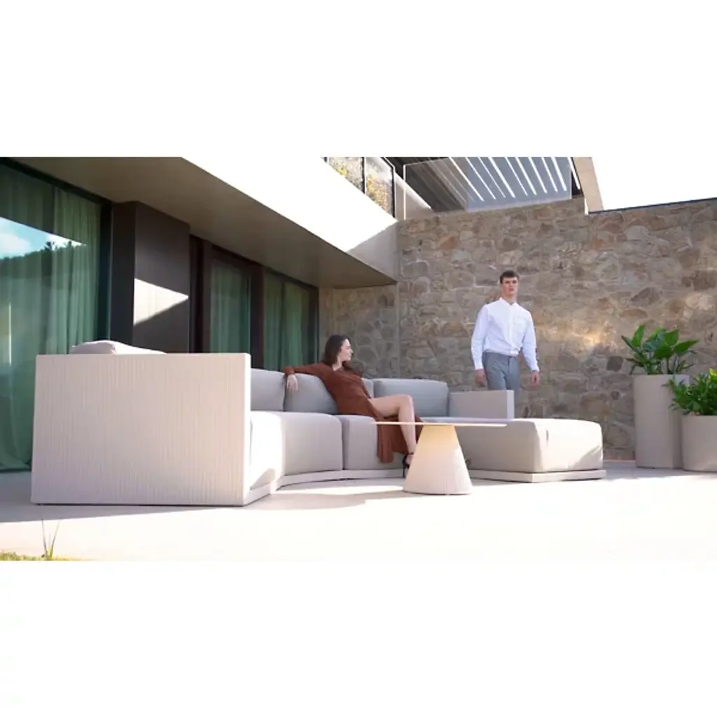 The Gatsby Modular Sofa & Puff 5-Seater by Vondom effortlessly captures the essence of the Art Déco era. Designed by Ramón Esteve, its sleek lines and soft, leather-like nautical upholstery evoke a sense of luxury and comfort. Made from fully recyclable, durable materials, this versatile sofa is perfect for both indoor and outdoor settings. Picture it in your living room or on the patio, inviting friends for gatherings and creating a stylish space to relax and enjoy life's moments.