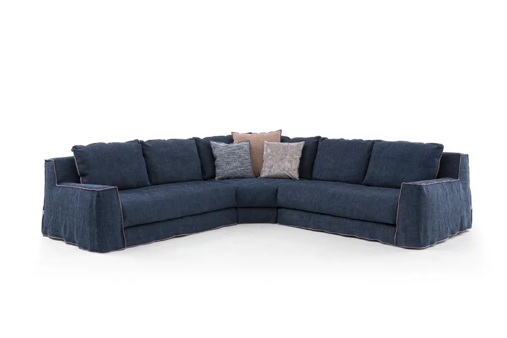 Modules of different shapes and particular corner elements of the LOLL sofa family allow you to create ever new configurations. A proposal that tells a story of contemporary comfort, made special by the attention to detail, the quality of the materials and the uniqueness of the craftsmanship, such as the profile of the sofas underlined by the characteristic sew/cut seam which, like a light line drawn by hand, follows the essential geometries and soft lines of the collection. The solid wood structure with polyurethane foam shell is combined with large seat and back cushions made with a soft layer of channelled goose down, recovering the traditional technique of using pocket springs in the seat cushions for enhanced comfort. In all its versions, the covers of the LOLL collection are completely and easily removable.Additional Information:Material: Upholstery, foamUpholstery: Munch Cat. C (6000)Dimension: 345 W x 345 D x 78 H cmSeat height: 45 cmArmrest height: 59 cmAvailable in other upholstery options: Cat. I, Cat. H, Cat. B, Cat. D, Cat. EAvailable in other structural optionsQuick Ship: Loll 20 / 21 / 22 with removable cover in lino bianco. Available with shipping the week after the order receipt, upon confirmation of availability.