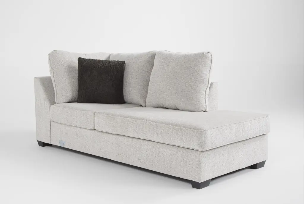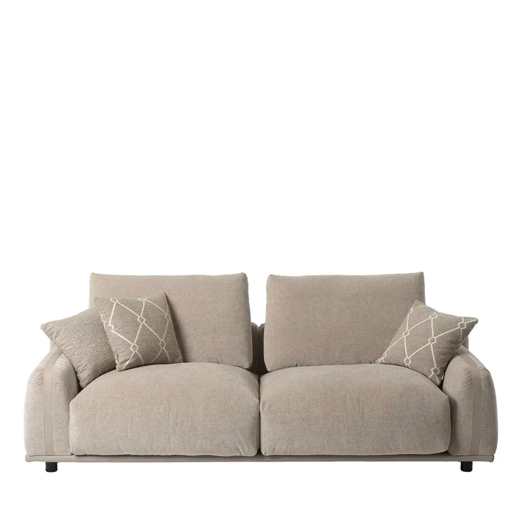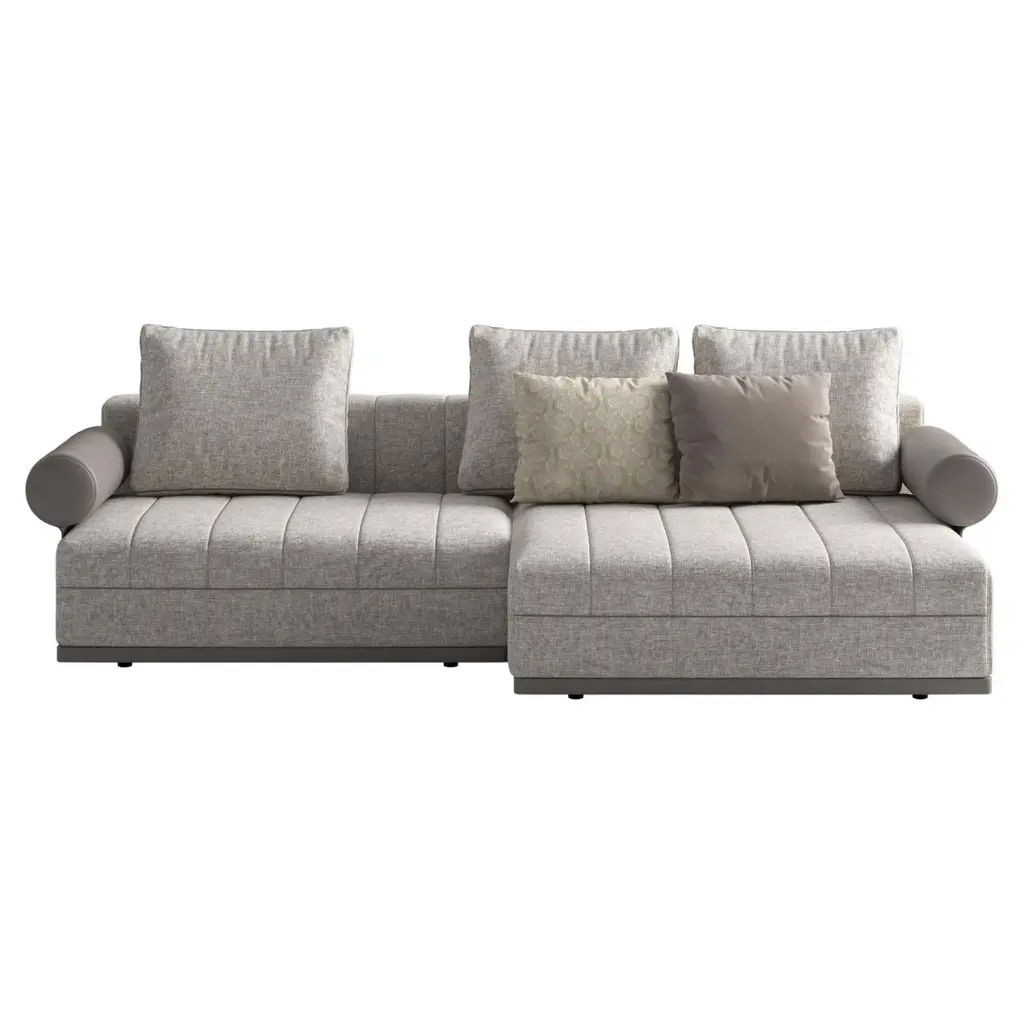 Modular sofa composed of right ending element with armrest and left chaise longue with armrest. Base, armrest, and roll cushion in leather.