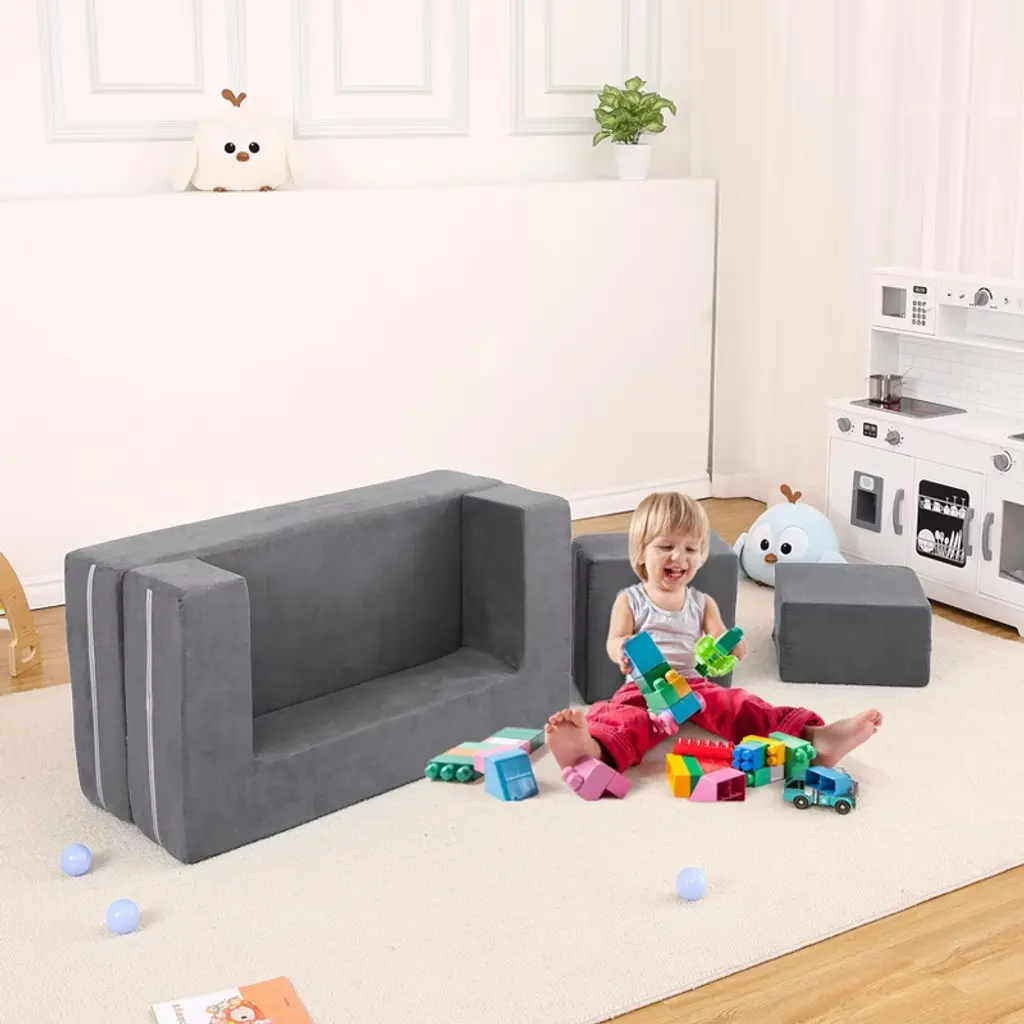 Gustowave 3Pcs Modular Kids Sofa, Toddler Couch Modular Kids Couch, Convertible Foam Sofa Play Set With Removable Cover, Dark Grey