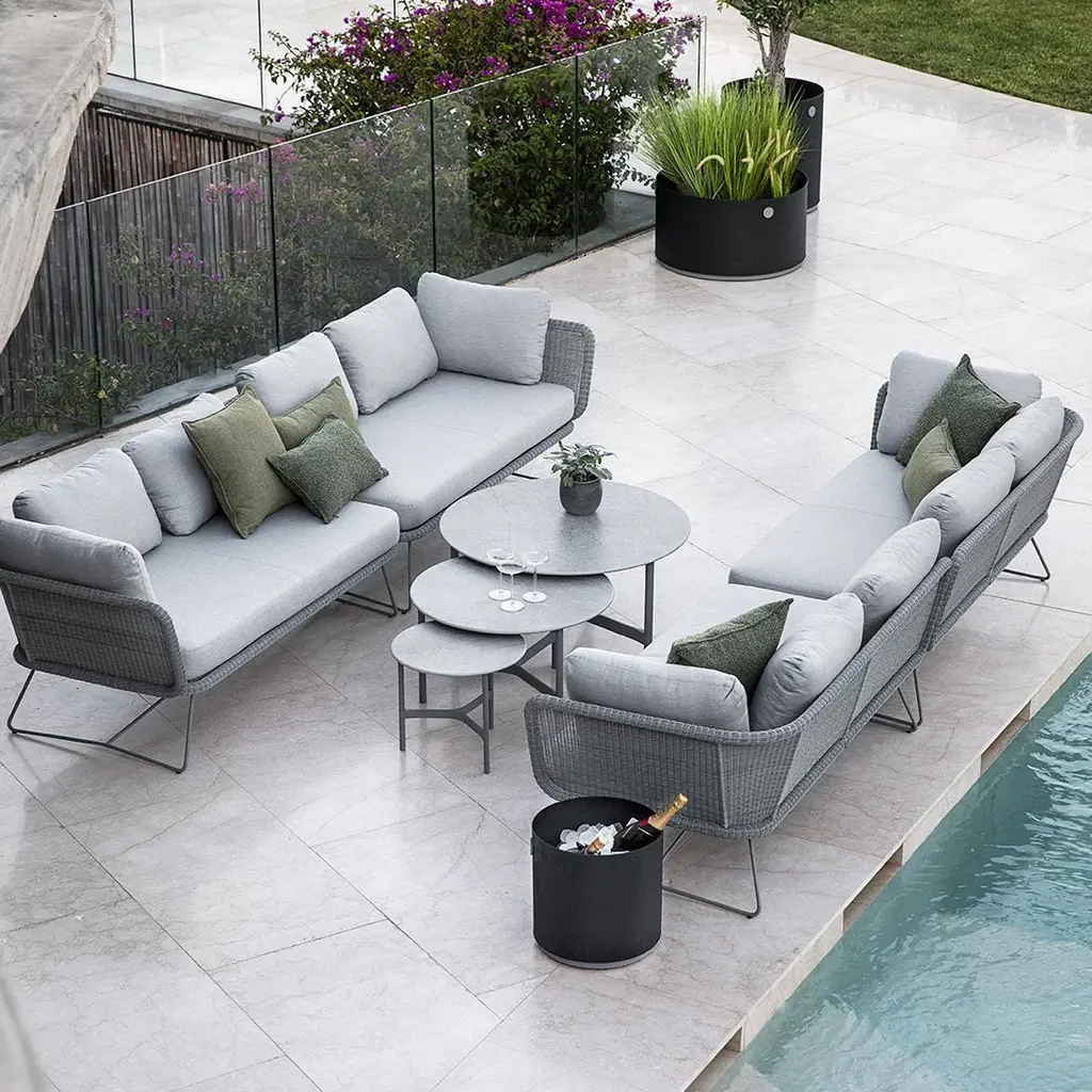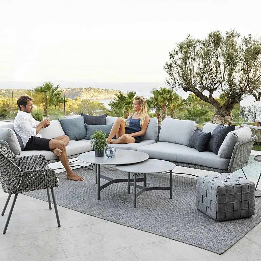 Horizon is an aesthetic and minimalistic lounge, with sharp lines and a modern expression. Horizon is a modular lounge concept based on a Scandinavian design, focusing on high comfort and flexibility. The lounge is modular and can therefore match any need, with the possibility of building your outdoor lounge area as large or small as your outdoor space allows. Horizon can stand alone as a single module, or be combined into a large corner or U-sofa. The narrow steel frame gives the lounge a slightly floating expression, which together with the woven seat forms an elegant frame on the lounge. Seat and cushions are made from the soft and comfortable Cane-line Nattà © fabric, which makes Horizon the perfect place for relaxation and reflection.