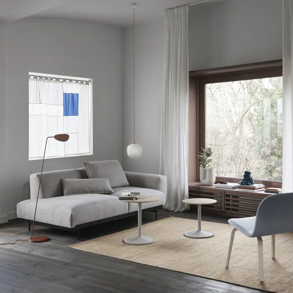 With In Situ, designers Anderssen & Voll say they meld "the grandeur of traditional Italian sofas with the refined simplicity of Scandinavian design." Working with Copenhagen brand Muuto, the Norwegian studio arrived at a distinctive modular scheme, with 30 prearranged configurations based on the different seating styles and loose cushions. A powder-coated steel frame runs along the seat and back of the sofa and visually unifies the separate units. In Situ's crisp profile and deeply comfortable proportions are realized with wood construction and foam, wadding and fiberball fill.