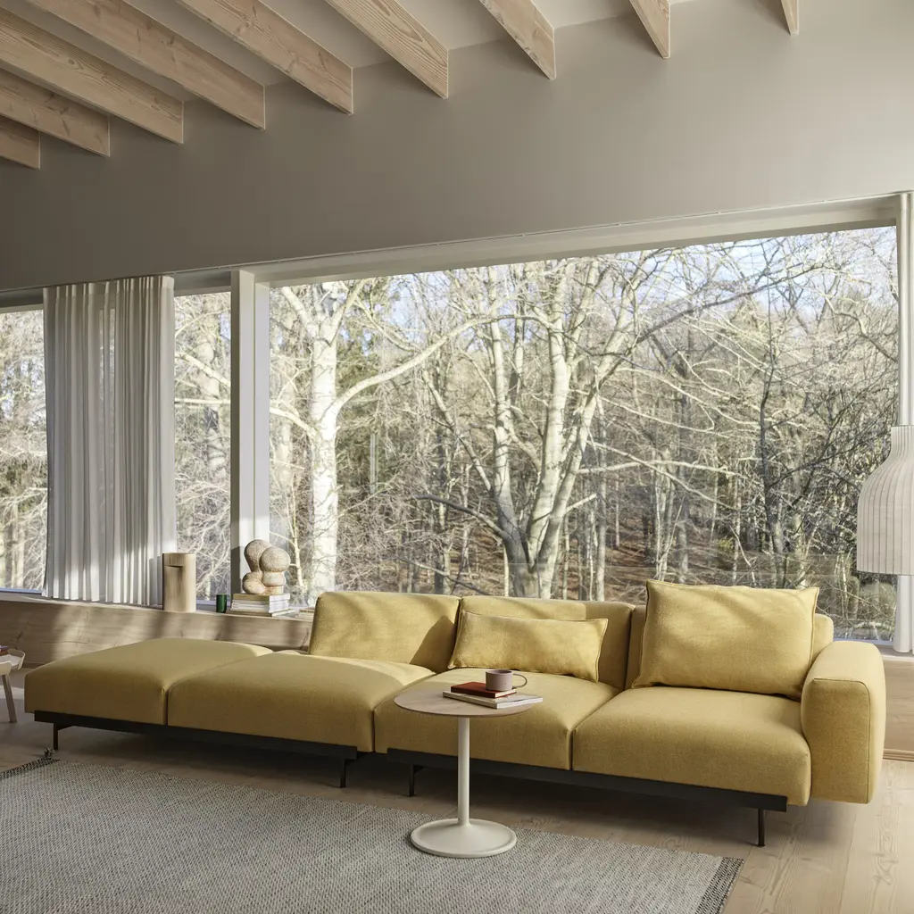 With In Situ, designers Anderssen & Voll say they meld "the grandeur of traditional Italian sofas with the refined simplicity of Scandinavian design." Working with Copenhagen brand Muuto, the Norwegian studio arrived at a distinctive modular scheme, with 30 prearranged configurations based on the different seating styles and loose cushions. A powder-coated steel frame runs along the seat and back of the sofa and visually unifies the separate units. In Situ's crisp profile and deeply comfortable proportions are realized with wood construction and foam, wadding and fiberball fill.