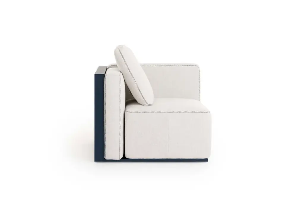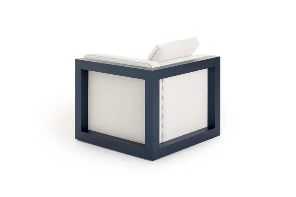 The Islablanca sectional 6 is a designer sofa that is perfect for creating multiple combinations with other modular furniture in the collection, personalizing any environment. Its outdoor upholstery is adorned with an exclusive trim and its structure is also available in an original metallic blue that gives it exclusivity and character.MaterialsPowder-coated aluminiumSeat and backrest in polyurethane foam rubber and polyester fiber with water-repellent fabricPolyester fiber cushion/pillow with water-repellent fabricRemovable technical upholstery for outdoor useIslablanca is a collection of outdoor furniture with a functional and elegant design created by José A. Gandía-Blasco Canales. The refined lines of this designer piece of furniture, clean and free of superfluous ornament, are inspired by the cubic rotundity, volume play, and the sobriety of traditional Ibizan constructions. ISLABLANCA is a tribute from its designer to the Mediterranean lifestyle and the connection with the nature of Ibiza, an island that he visited almost fifty years ago and for which he felt a fascination that endures despite the passing of the years.