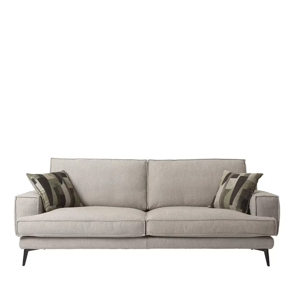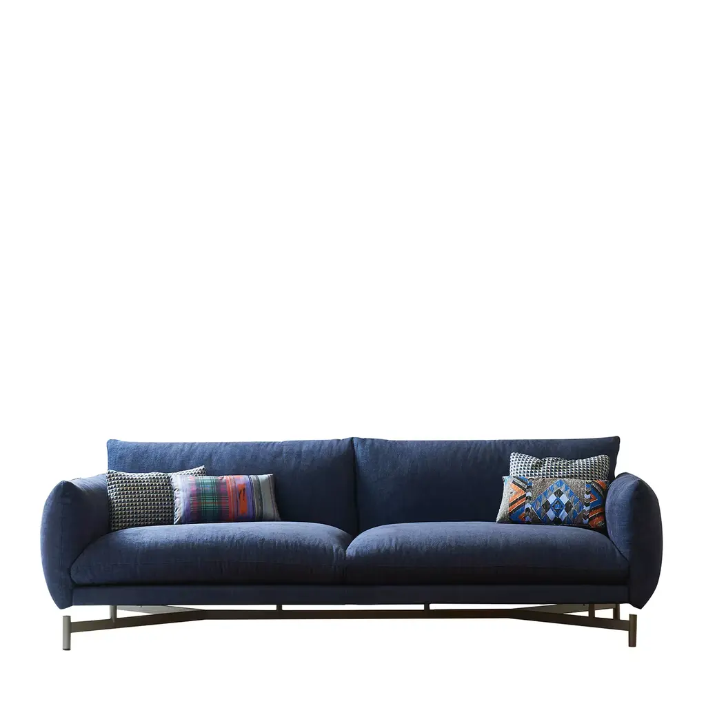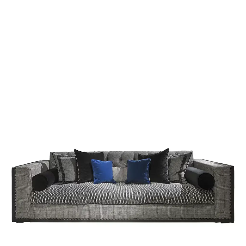 A modular sofa provided with two large and welcoming seats, this stupendous design is entirely upholstered with a first-rate jacquard fabric showcasing a striking luminous allure. Completed with five pillows (included), it is an invitation to utmost comfort and relaxation. Please refer to the Concierge for further details.