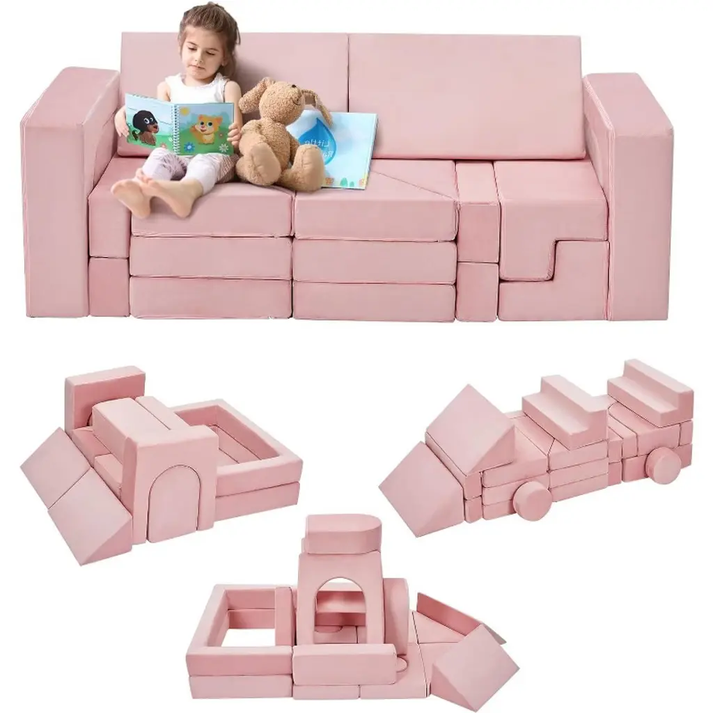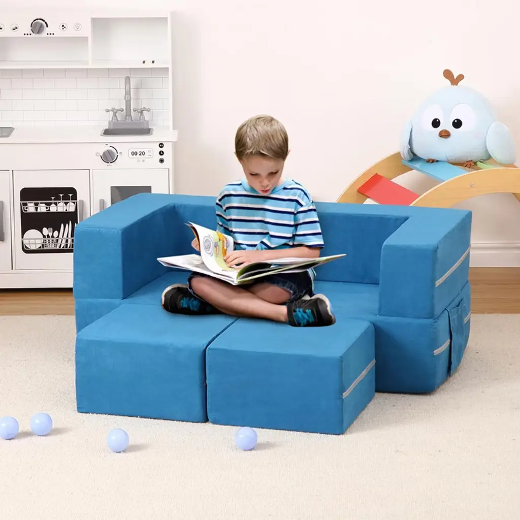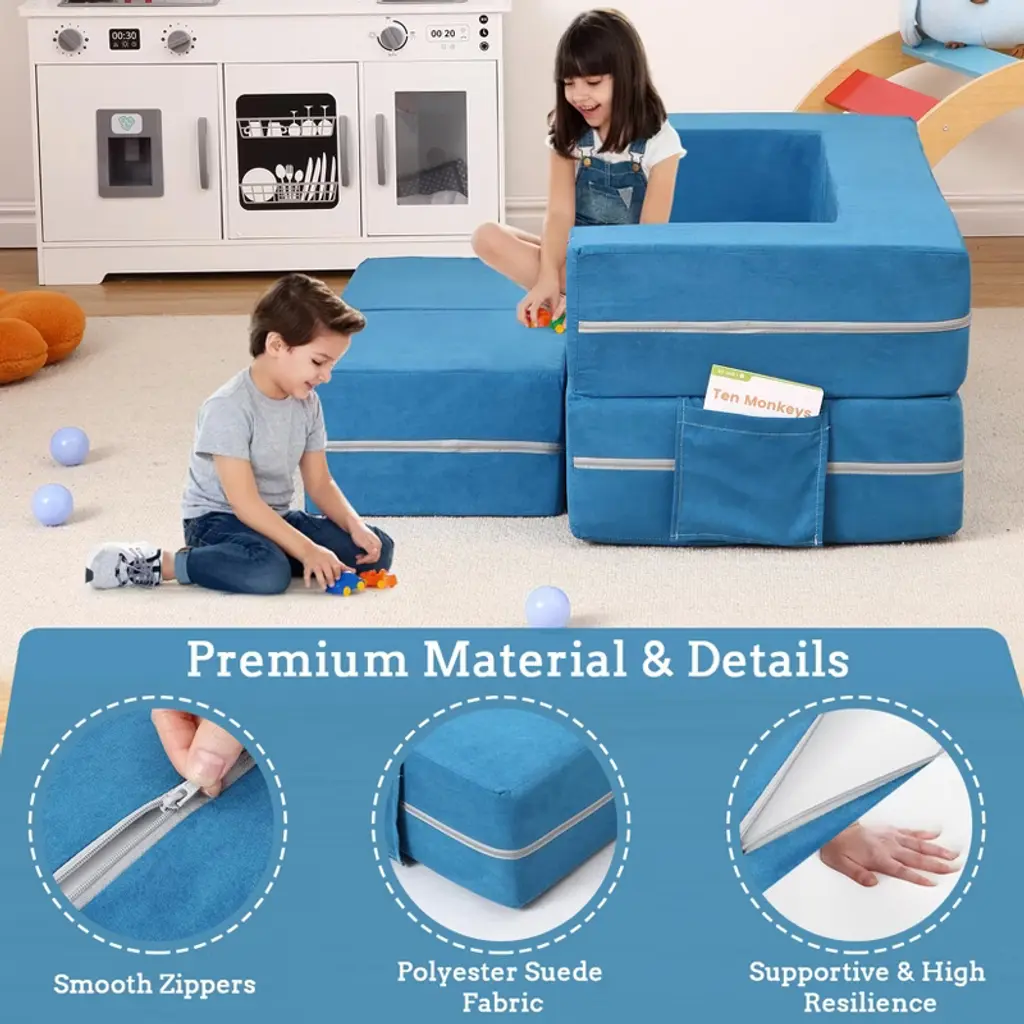 Kids Couch 3PCs Modular Kids Play Couch, Toddler Couch Kids Convertible Sofa Foam Floor Sofa for Children, Kids Couch Bed for Creative Play Set