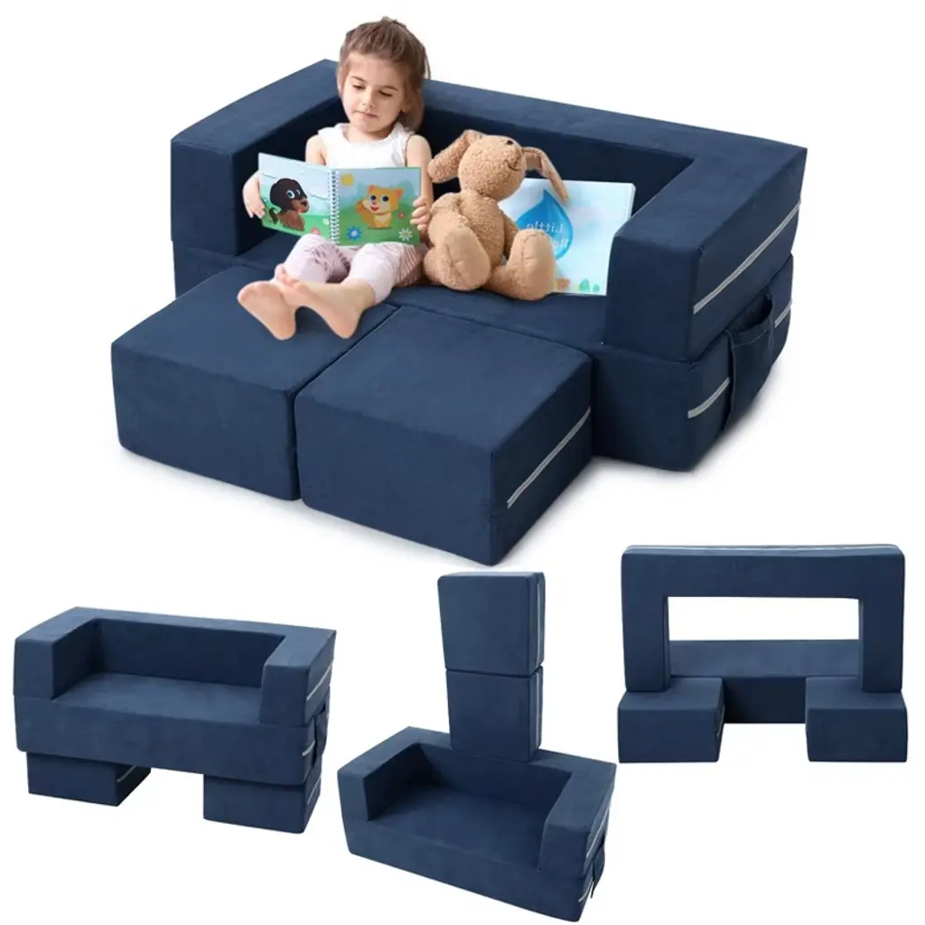 Kids Couch 3Pcs Modular Kids Play Couch, Toddler Couch Kids Convertible Sofa Foam Floor Sofa