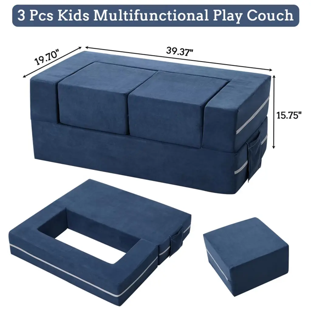 Kids Couch 3PCs Modular Kids Play Couch, Toddler Couch Kids Convertible Sofa Foam Floor Sofa for Children, Kids Couch Bed for Creative Play Set