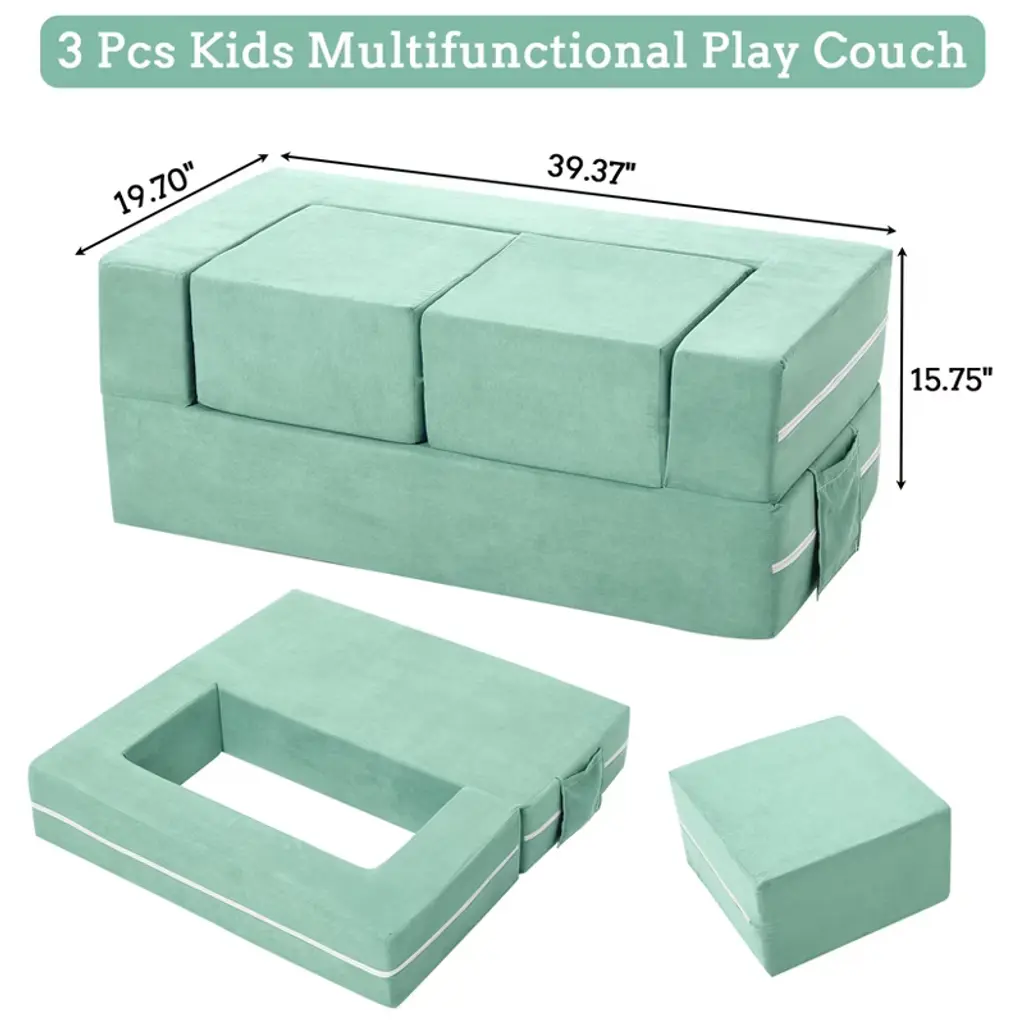 Kids Play Couch, 3Pcs Modular Kids Couch For Playroom Bedroom Furniture, Convertible Foam Kids Play Sofa With Removable Cover, Green